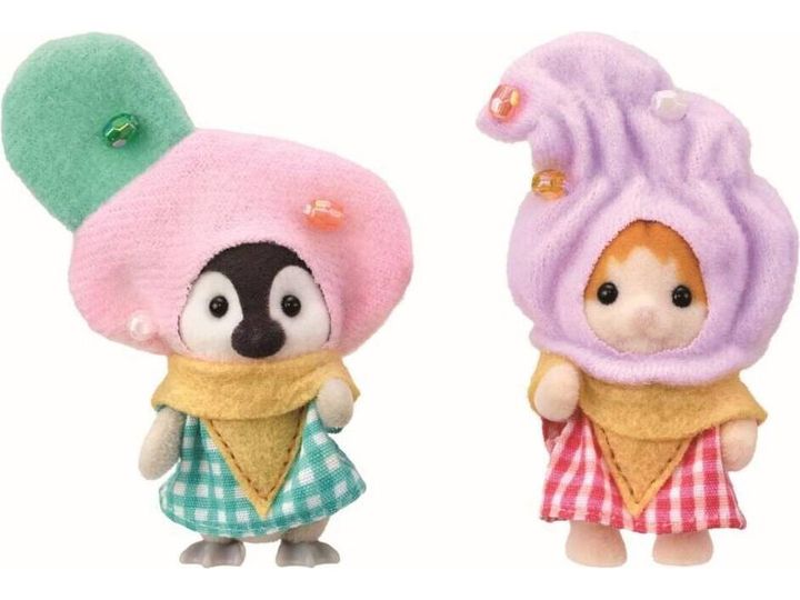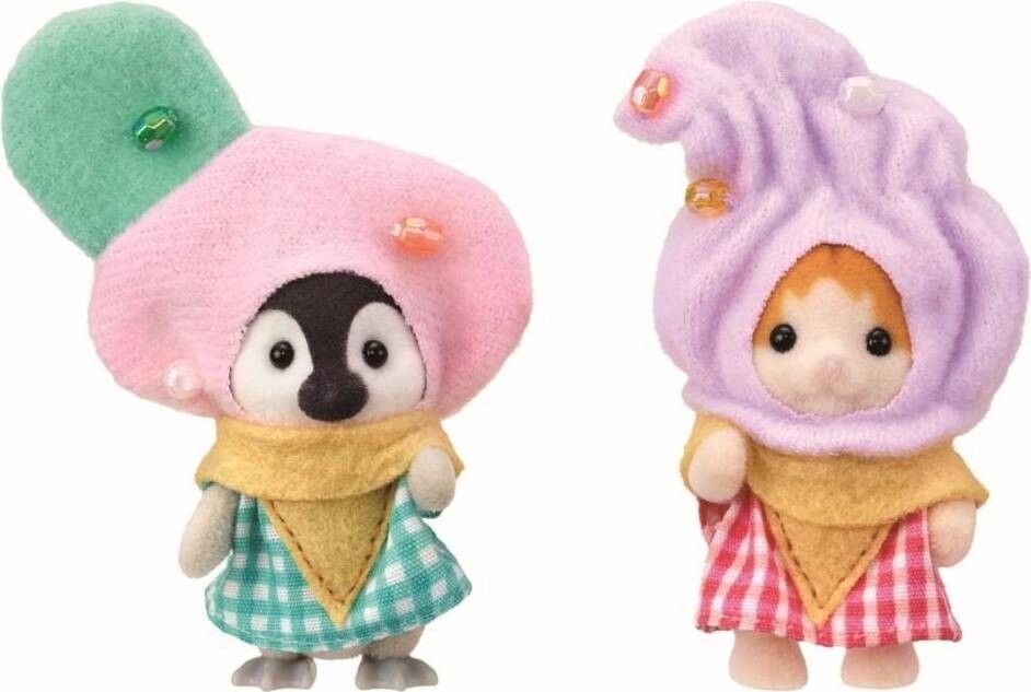 *A set featuring Maple Cat baby, Alfie, and Penguin baby, Kippie, both dressed in ice cream cone costumes.