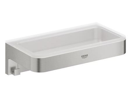 Start Cube, brusekurv, Supersteel, Materiale: metal/plastik skjulte fastgøringsskruer Grohe Long-Life-belægning suitable for screwing (including screws and dowels) or gluing (Grohe QuickGlue A2 41 128 000 sold separately) holding force: max. 5 kg the specified holding capacity is valid for static (slowly applied) load and intended use only spare mounting plate (40 917 000)