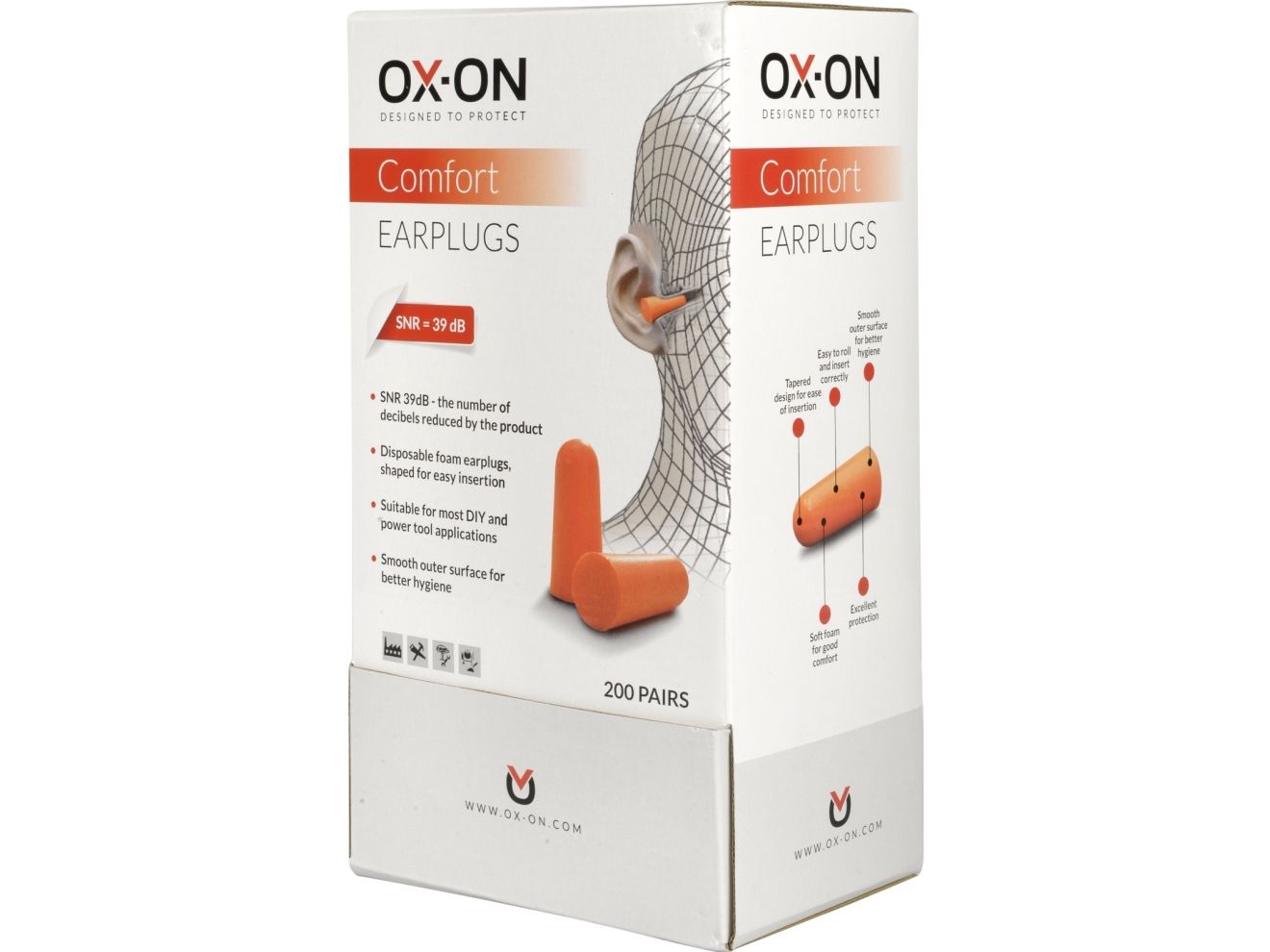 Earplugs Comfort har desuden en særdeles høj dæmpningsværdi (SNR værdi) på 39 dB.