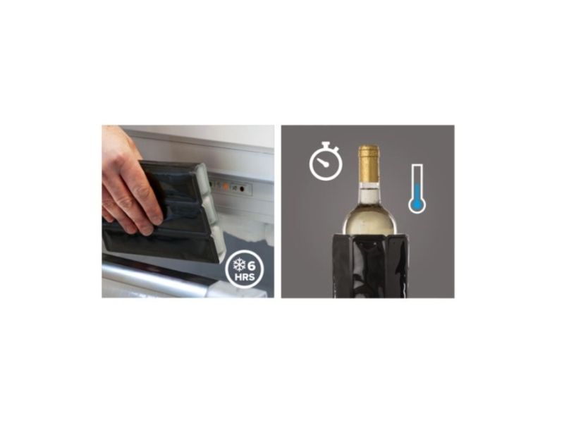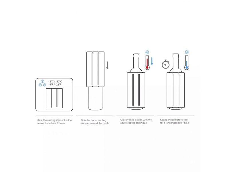 Vacu Vin Active Cooler Mini køler aktivt dine yndlingsdrikke og holder dem kølige og forfriskende. Velegnet til både ølflasker (33 cl) og halve vinflasker (375 ml). Det isolerede flaskekølerhylster sikrer, at din flaske forbliver ved sin ideelle serveringstemperatur i længere tid med et genanvendeligt køleelement. Opbevar Active Cooler i fryseren i mindst 6 timer for optimal brug. Det fleksible kølehylster er designet til at passe tæt omkring dine 33 cl ølflasker eller 375 ml halve vinflasker. Når den er brugt, fjernes flaskehylsteret, foldes det fladt og lægges i fryseren indtil næste gang. D