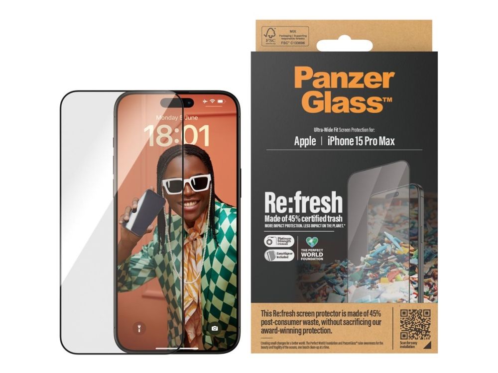 PanzerGlass™ | Ultra-Wide Fit - Skjermbeskyttelse for mobiltelefon - Re:fresh | Apple iPhone 15 Pro Max