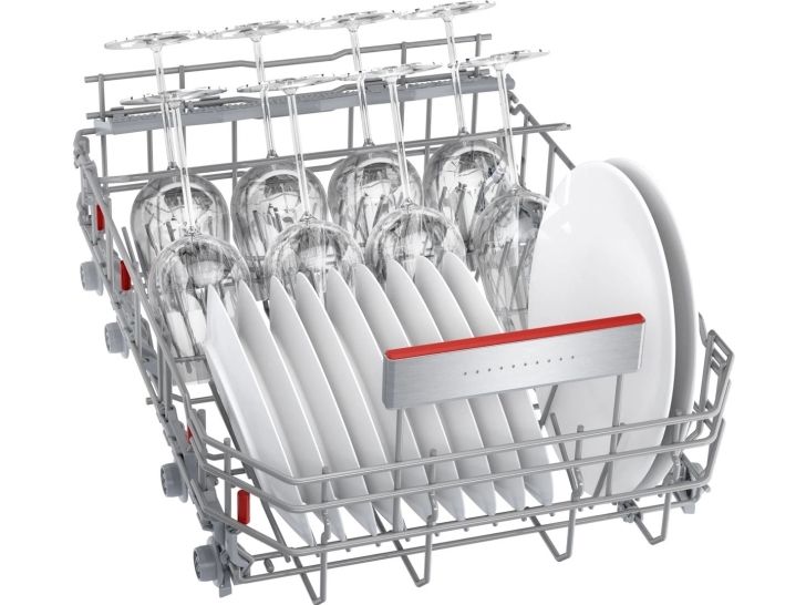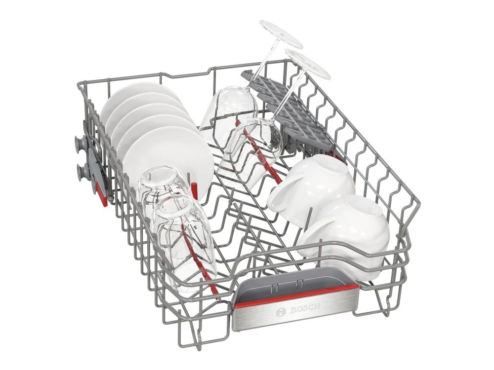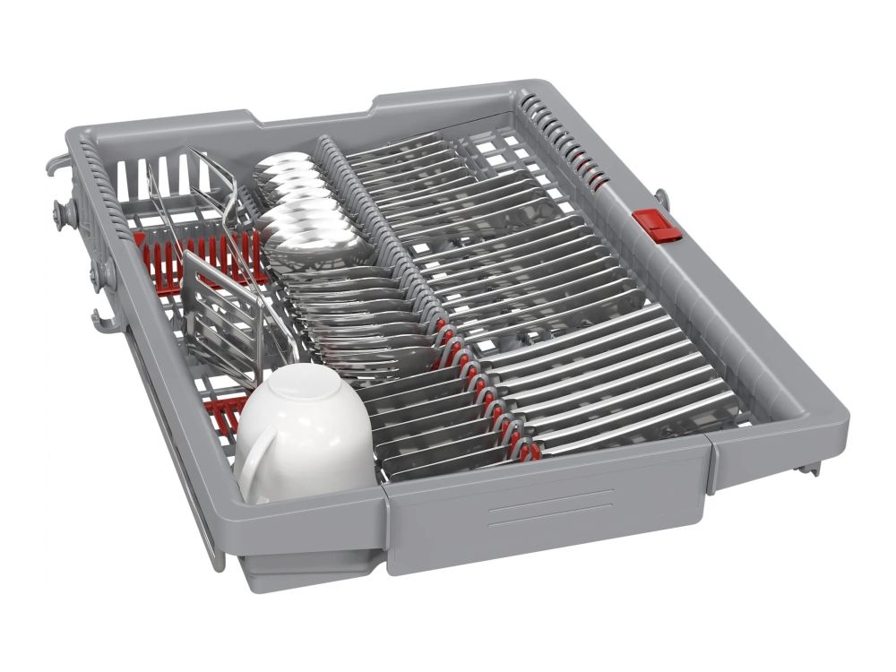 The Bosch Serie | 6 SPV6YMX08E dishwasher provides an efficient and eco-friendly solution for everyday dishwashing needs. With a water consumption of only 8.5 liters per cycle and an Energy Class B rating, it ensures that both your utility bills and environmental impact are minimized. This built-in model features up to three adjustable racks, including the innovative VarioDrawer Pro, optimizing space for various types of dishes and utensils.