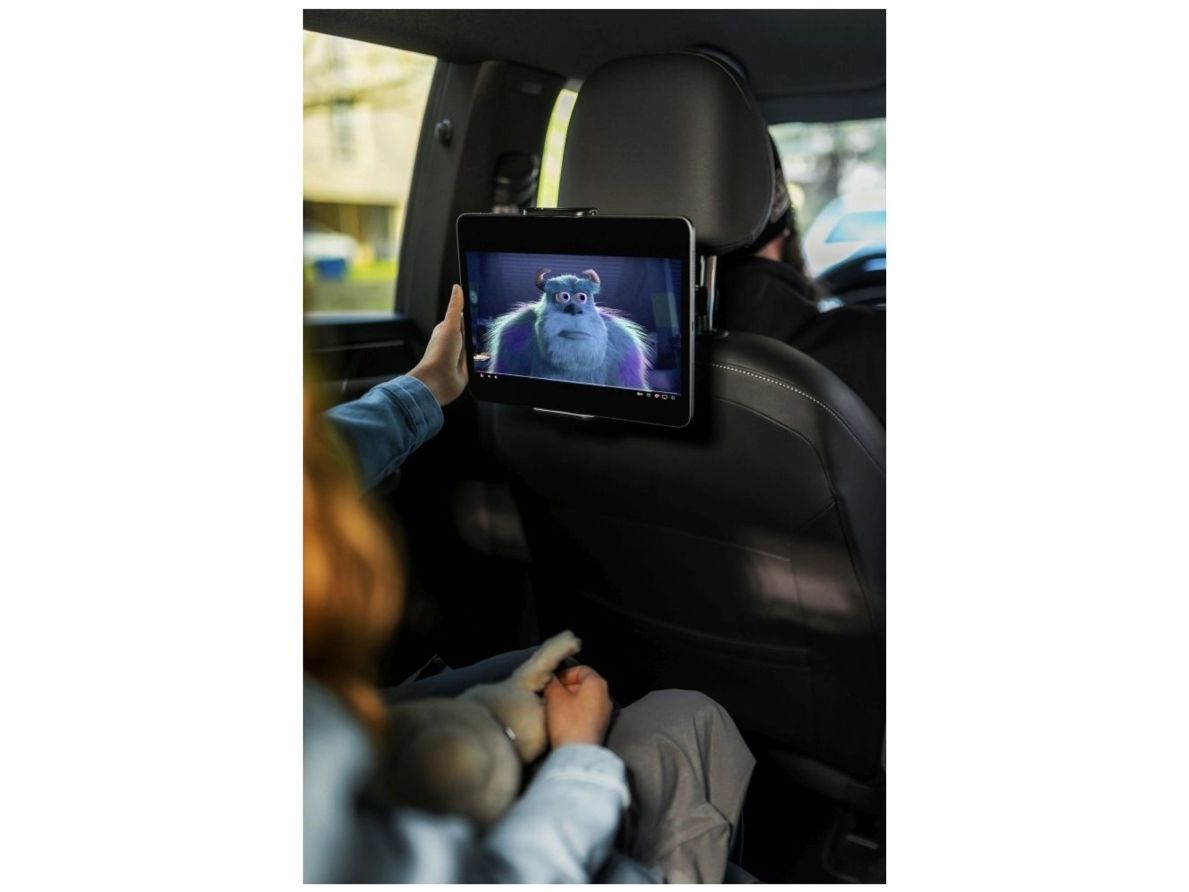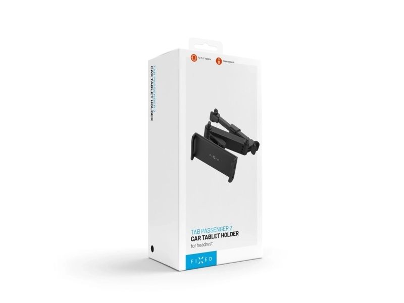 The FIXED Tab Passenger 2 car holder is designed for securing your tablet during travel. With 360° rotation and swivel joints, this holder ensures that any passenger can adjust the device for the best viewing angle. It accommodates tablets with screen sizes ranging from 7" to 13", making it versatile for various devices. The rubberized pliers ensure a secure grip while the extending arm allows for optimal positioning, providing comfort and convenient features for long journeys. Install this holder between headrests in your car for effortless access and enjoyment during every trip.