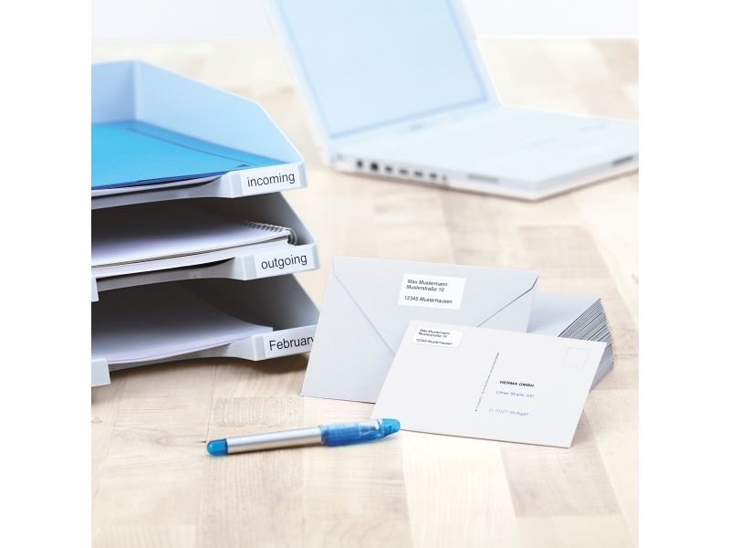 HERMA SuperPrint self-adhesive labels on A4 sheets are perfect for all PC printers (laser/inkjet/dot-matrix), copiers, multi-functional machines, also suitable for color laser printers / color copiers. High-grade special paper, chlorine-free bleached, solvent-free adhesive. The label paper in High-Resolution-Quality guarantees perfect toner fixing and optimum laser printing results, also at high resolution. Trouble-free processing due to all-around protective edge and optimum lay flatness.