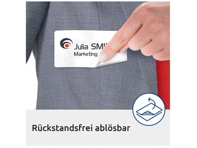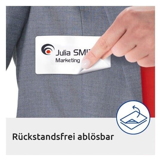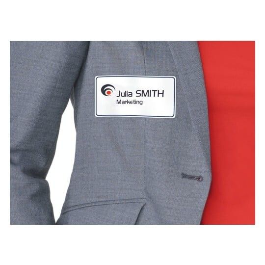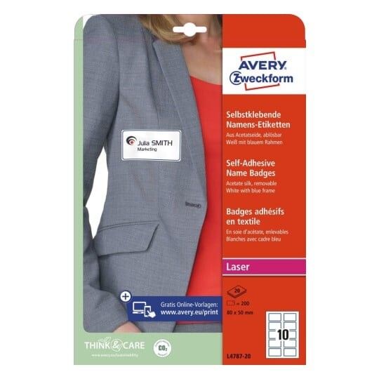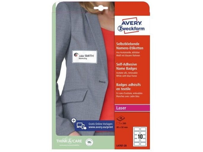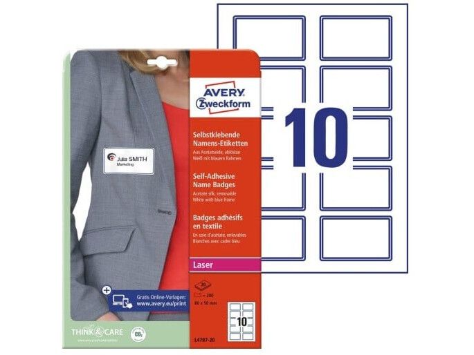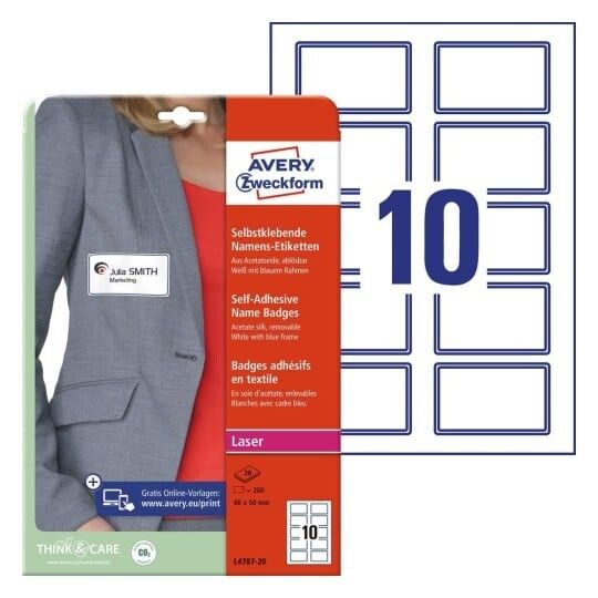 | • Klæber på tekstiler (undgå sarte tekstiler) • Fjernes nemt uden at efterlade mærker • Nem, professionel og praktisk navneskiltløsning • Elegant PVC-frit silkemateriale (Acetat) • Design og print nemt med GRATIS skabeloner |
