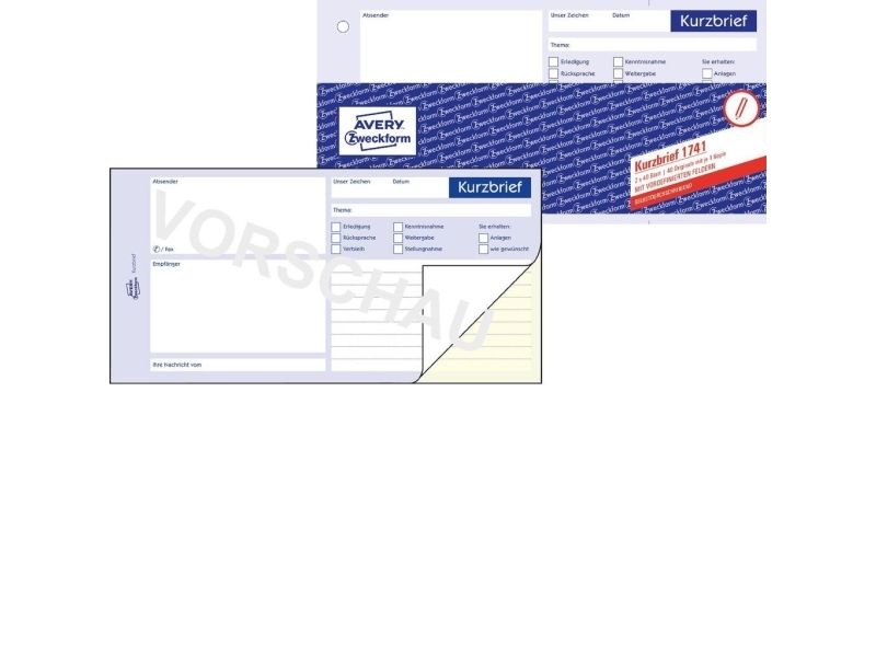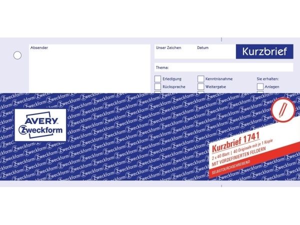 Avery Zweckform - Oppsett for kort brev - 40 ark - 1/3 A4 - dublett - karbonfri