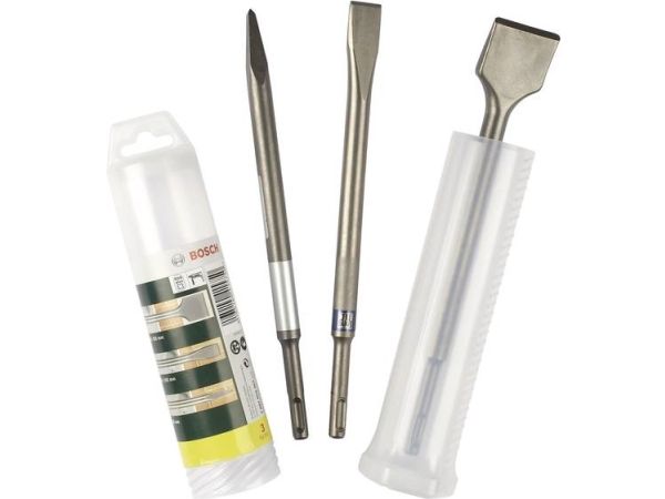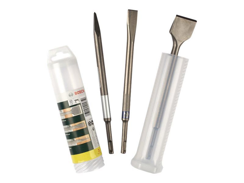 Bosch - Meiselsett - for betong, murverk, granitt - flat, spiss, spade - 3 deler - SDS-plus - lengde: 250 mm - for UniversalHammer 18V