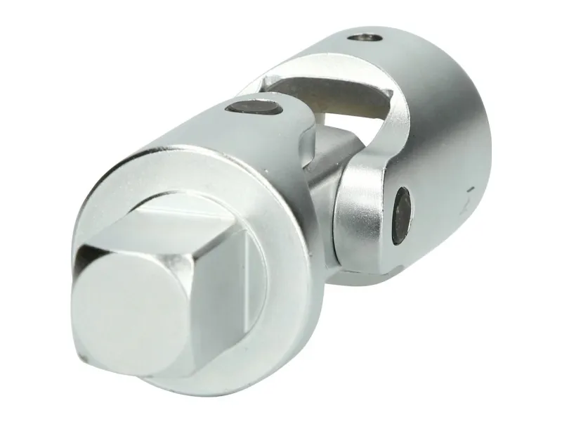 1 kardanled • DIN 3123/ISO 3316 • Firkantsdrev iht. din 3120 / ISO 1174 med kuglelås • Indvendig firkant i henhold til din 3120/ISO 1174 med kuglefangerille • Led skruet fast • mat satineret • Krom/vanadium