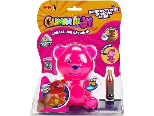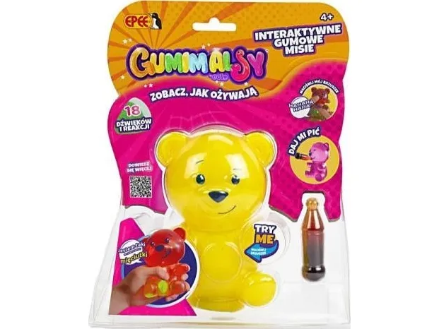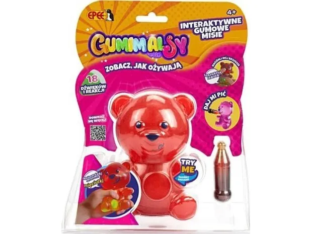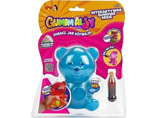 Gummymals är oemotståndligt klämbara nallebjörnar med över 20 interaktiva funktioner. Mata från flaskan, rapa, skratta, kittla och natta till sömns. Nallebjörnen reagerar med ljud och ljuseffekter. Storlek 18 cm. Batterier ingår. Flera olika. 3+