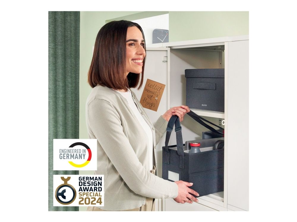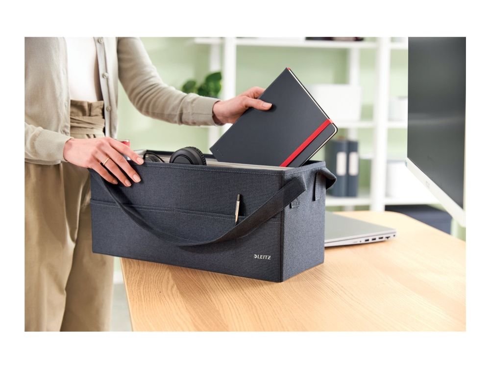 - Opbevaringsserien i stof fra Leitz kombinerer hjemlig komfort med førsteklasses kvalitet for at skabe et positivt og produktivt arbejdsmiljø