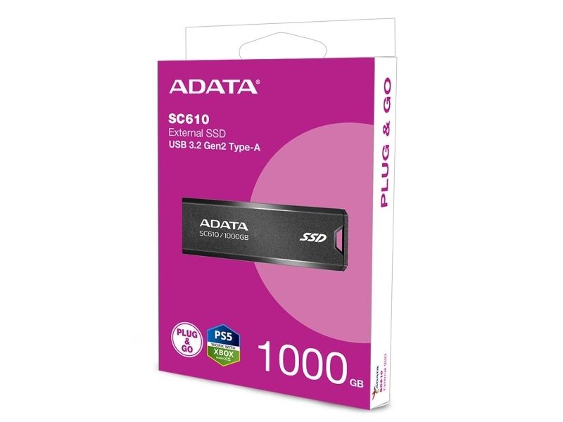 The ADATA SC610 USB flash drive combines high-speed performance with a large storage capacity, making it a suitable solution for professionals and enthusiasts. With read rates of up to 550 MB/s and write rates of 500 MB/s, it offers rapid data transfer speeds that save time and enhance productivity. The drive's 1 TB capacity provides plenty of space for storing documents, media, and files. Designed for durability and convenience, it features a sturdy plastic housing and a slide design for easy access. Whether you're at work, home, or on-the-go, the ADATA SC610 is a reliable storage companion.