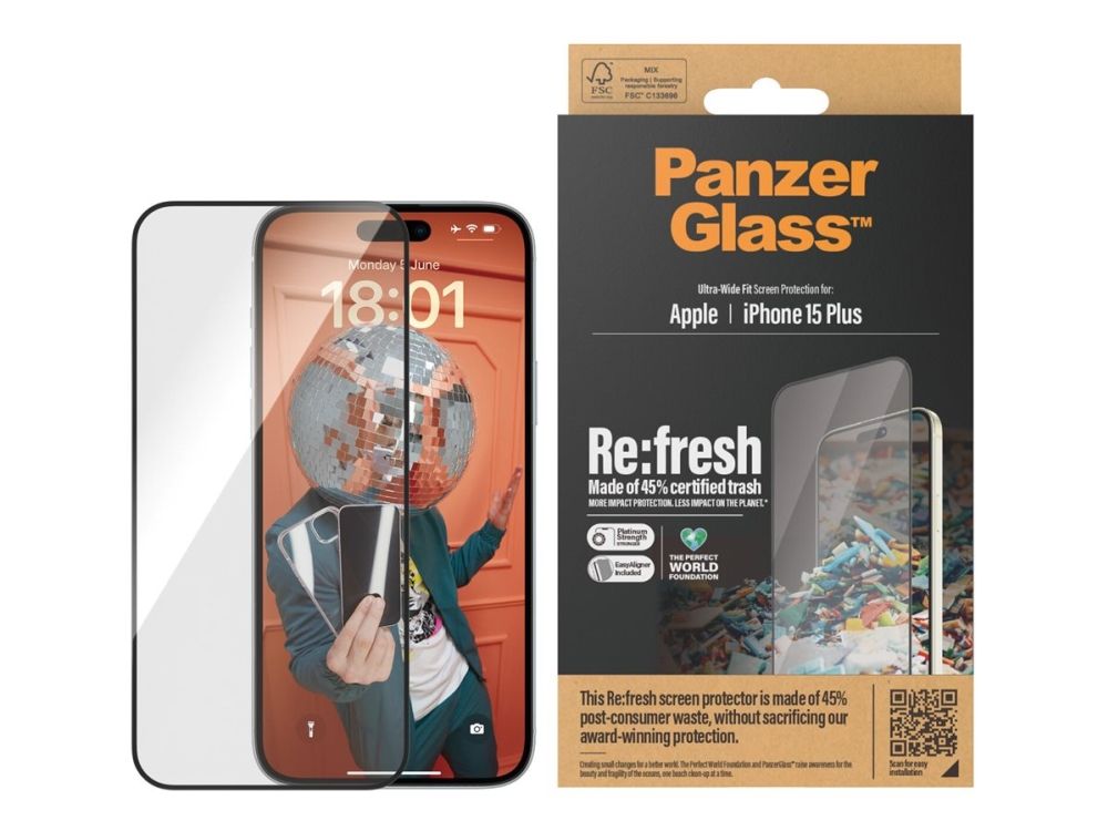 PanzerGlass™ | Ultra-Wide Fit - Skjermbeskyttelse for mobiltelefon - Re:fresh | Apple iPhone 15 Plus