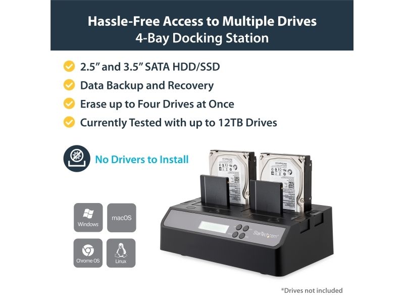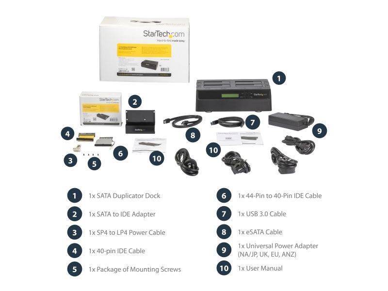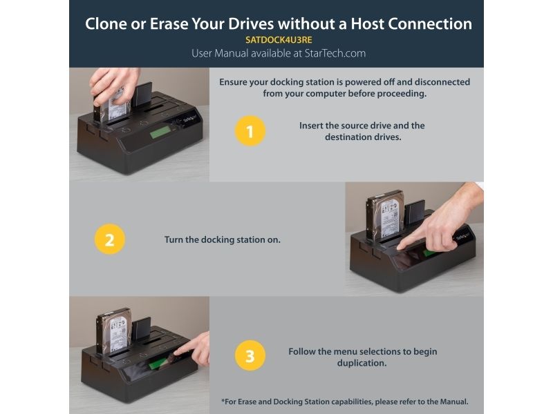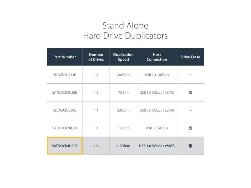 Features Quick and Secure Erase functions and support for IDE hard drives using the included SATA to IDE hard drive adapter (SAT2IDEADP).