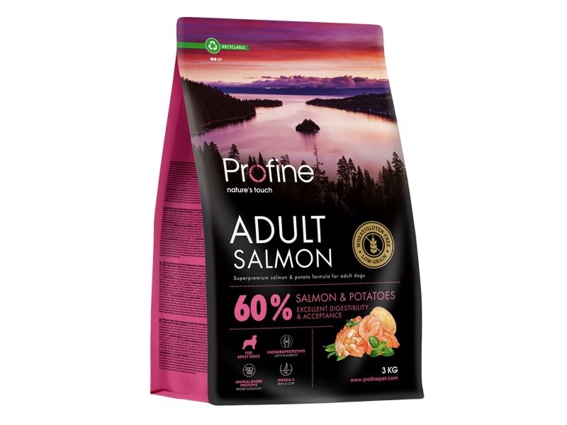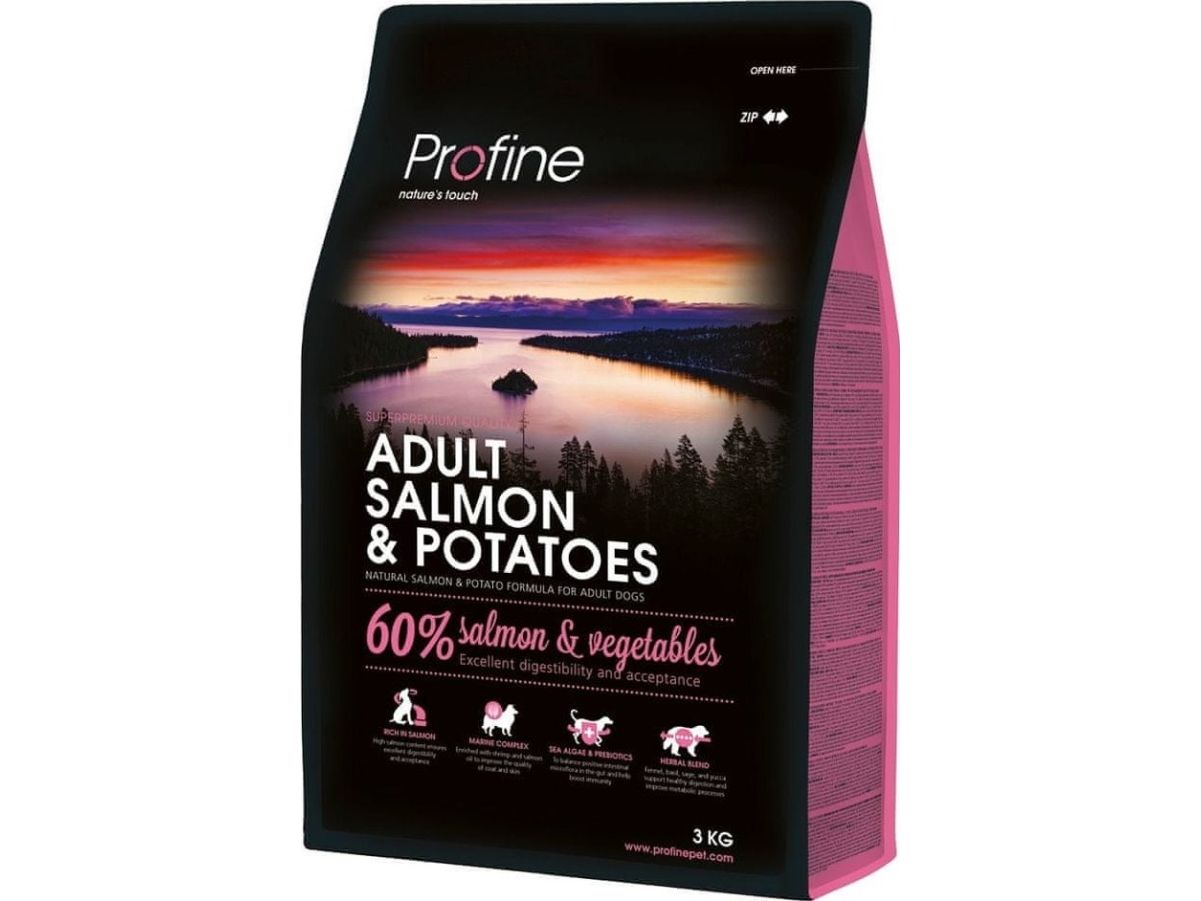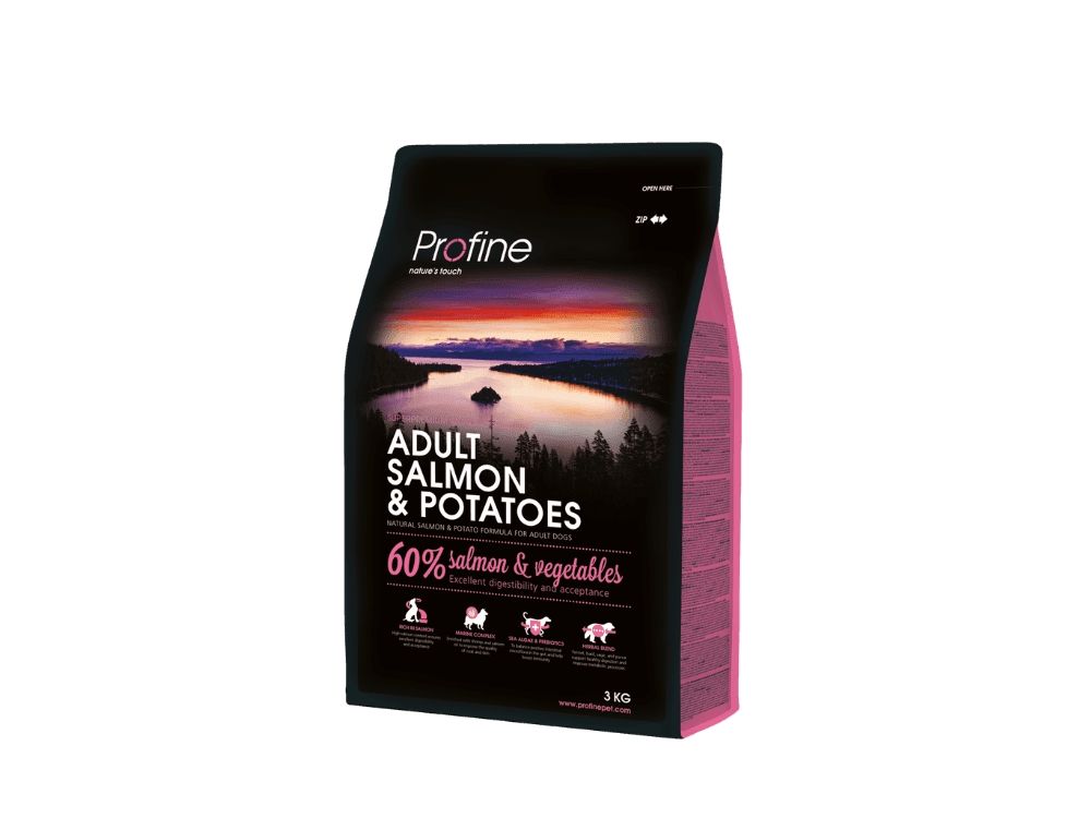 Har din hund fordøjelsesproblemer eller på anden måde reagerer sensitivt på kylling, så er Profine Adult Large Salmon & Potatoes måske et godt valg.