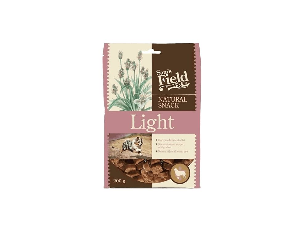 Sam's Field Natural Snack Light er en halvfugtig snack. Den er lavet med fokus på en fedtfattig opskrift, så alle hunde, store som små, kan få glæde af godbidder. Har din hund tendens til overvægt er den perfekt eller brug den som en let snack, hvis I træner meget.