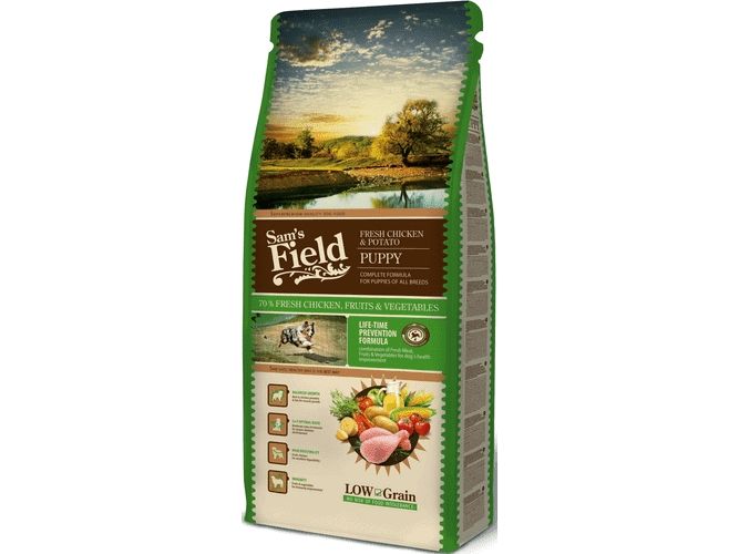 Hvalpefoderet anvendes det første år til alle små og mellemstore racer, mens store hunderacer anbefales at starte på Puppy i en periode før de skifter over til Junior Large foder. Low Grain opskriften i Sam’s Field Puppy minimerer risici for foderintolerance, mens den supplerer alle vitale næringsstoffer til din hvalp, således den kan vokse sig stærk, og opnå en optimal hud og pels.