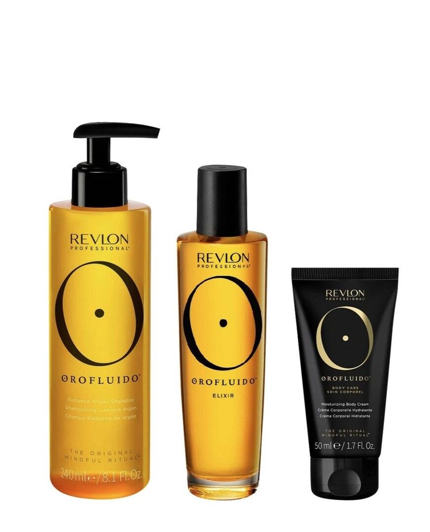 | Settet inneholder 1 x Hårolje 100 ml + 1 x Hårsjampo 240 ml + 1 x Kroppskrem 50 ml |
