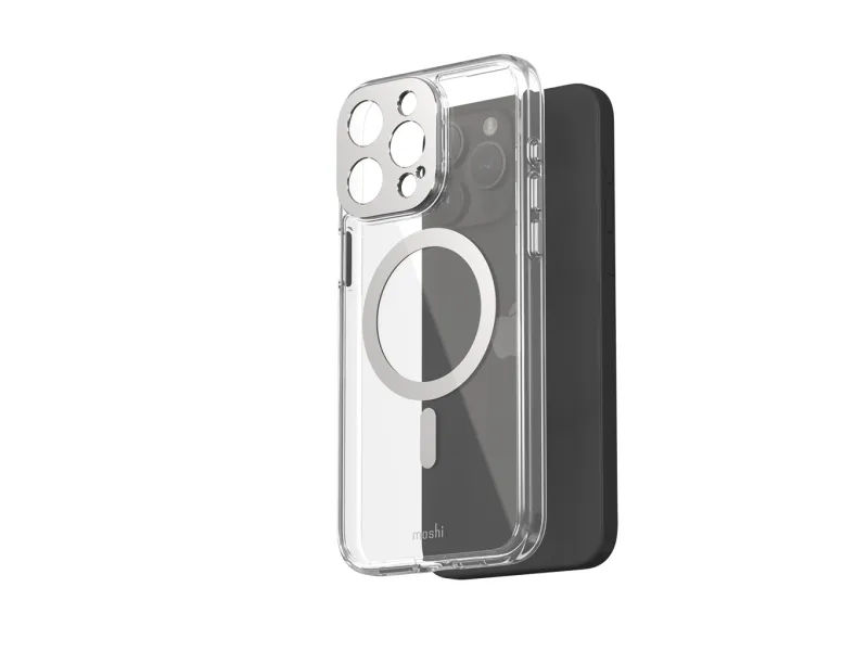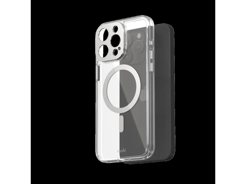 Experience the ultimate convenience functionality and stylish protection with the Moshi iGlaze for iPhone 15 Pro Max in Lunar Silver. This case features a transparent triple-layer fusion technology alloy lens protector and buttons in a sleek ultra-thin design. With full compatibility for wireless charging and magnetic accessories and the ability to switch to a 2-in-1 multi-functional back strap it's the perfect accessory for the modern iPhone user.Transparent Triple-layered Fusion TechnologyPremium Alloy Lens Protector and ButtonsFully Compatible with Wireless Charging System and Various Magnetic AccessoriesUltra-thin and Highly Transparent DesignIt can be used with a 2-in-1 multi-functional backstrapTransparent Triple-layered Fusion Technology This design enhancement ensures a perfect enclosure of the magnetic ring eliminating any risk of detachment. It also promises the pattern will never wear off serving practical and aesthetic purposes. Premium Alloy Lens Protector and Buttons Enjoy the dual benefits of protection and precise alignment courtesy of the alloy lens protector. It guarantees your lens remains in excellent condition without relying on adhesives. Fully Compatible with Wireless Charging System and Various Magnetic Accessories Take advantage of the full support for Qi wireless charging systems and Magsafe magnetic accessories. Much more than convenience it ensures a secure and stable connection providing a comprehensive and convenient user experience. Ultra-thin and Highly Transparent Design Experience handheld comfort with the lightweight and slim design. The high transparency further enhances the aesthetic appeal perfectly showcasing the original texture and colours of your iPhone 15 Pro Max. It can be used with a 2-in-1 multi-functional backstrap Incorporate varying styles to your needs with our interchangeable back strap and wrist strap. Go hands-free effortlessly and carry your phone with more than just style in mind. Package Includes1 x Moshi iGlaze for iPhone 15 Pro Max - Lunar SilverMulti-functional back strapProduct SpecificationsMaterial: Scratch-resistant high-hardness back panelCompatibility: iPhone 15 Pro MaxCharging Compatibility: Qi wireless charging systemsLens Protector Material: AlloyDesign: Transparent Triple-layered Fusion