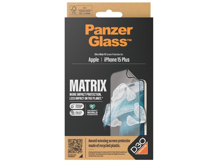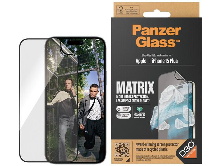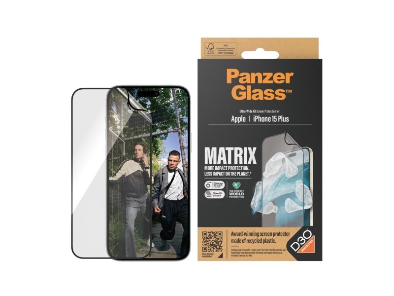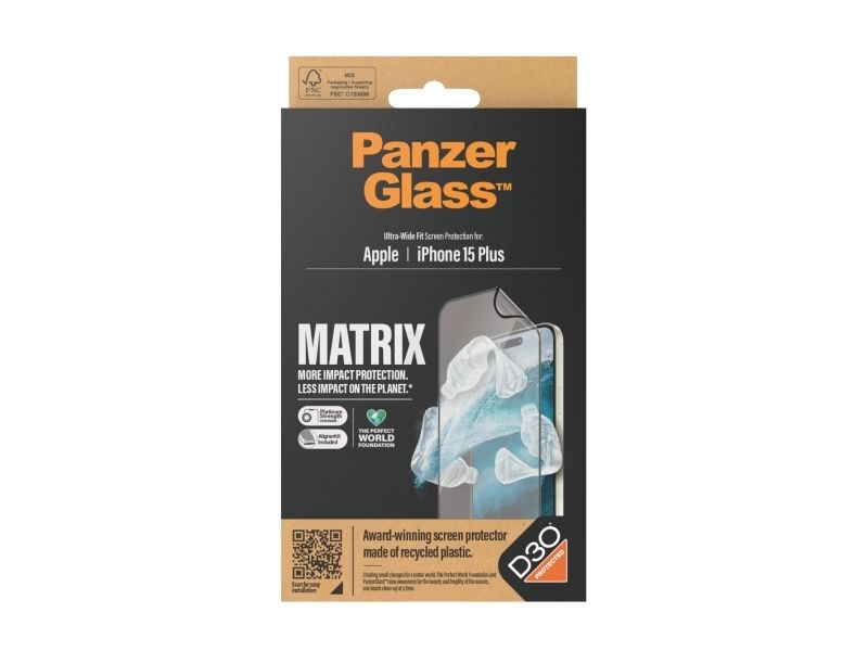 PanzerGlass™ | Ultra-Wide Fit - Skjermbeskyttelse for mobiltelefon - Matrix Protection | Apple iPhone 15 Plus