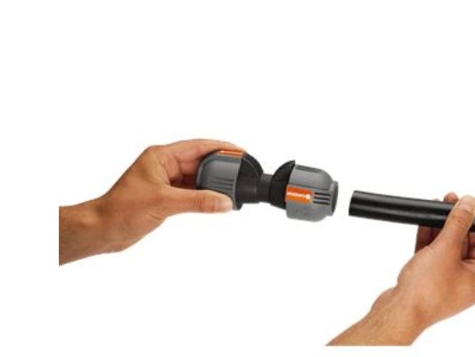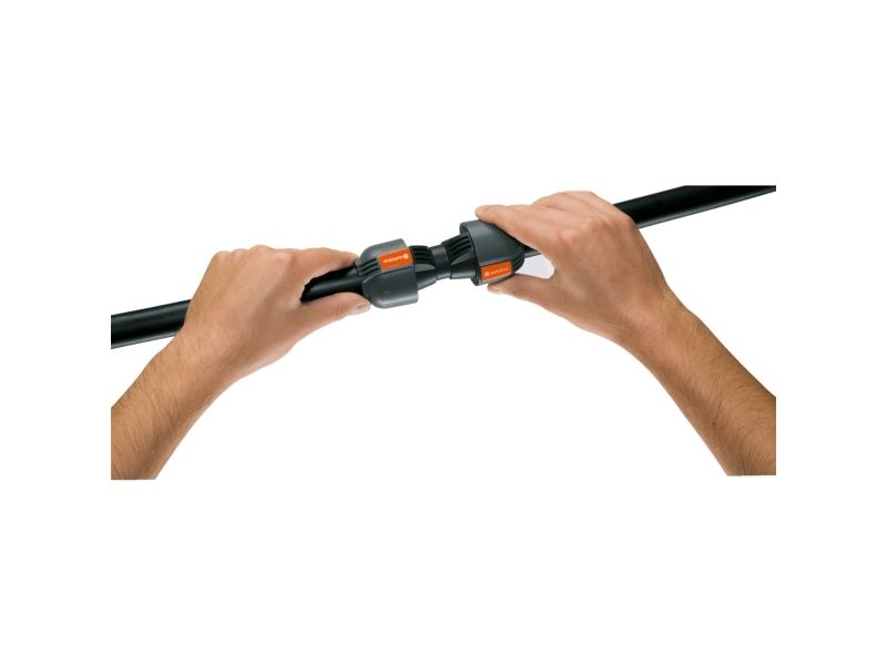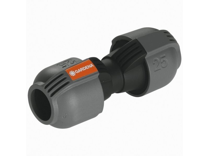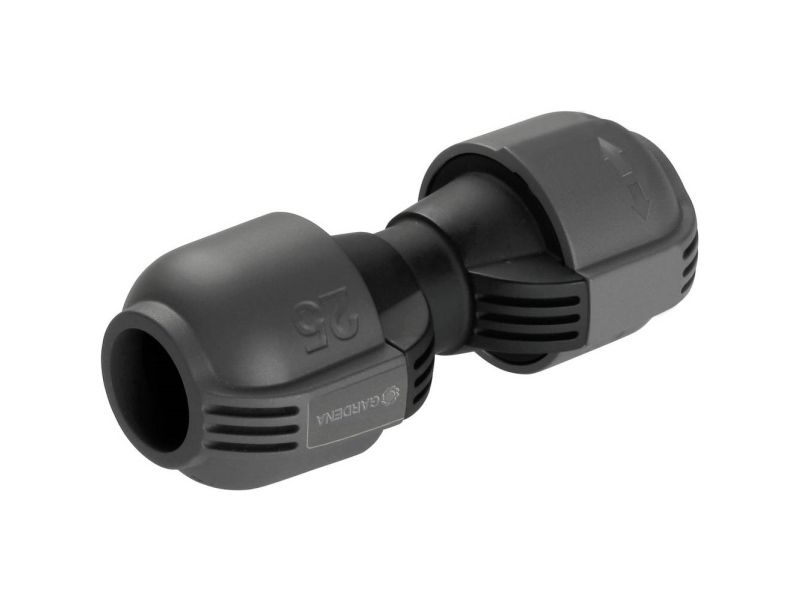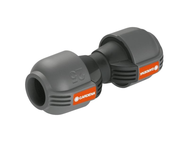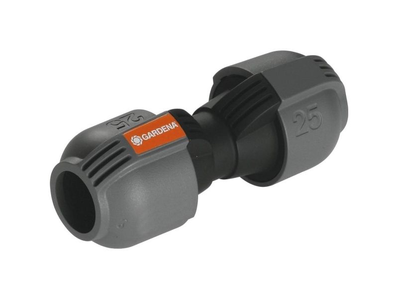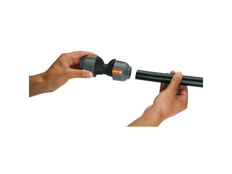 GARDENA-forbinderen 25 mm - som del af GARDENA-sprinklersystemet - bruges til let forlængelse af tilslutningsrøret. Gennem det patenterede "Quick & Easy"-tilslutningssystem kan rørsamling eller adskillelse udføres uden værktøj ved simpel 140° drejning af det påskruede rørstykke.