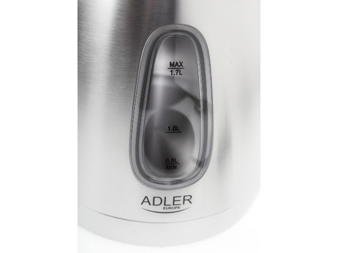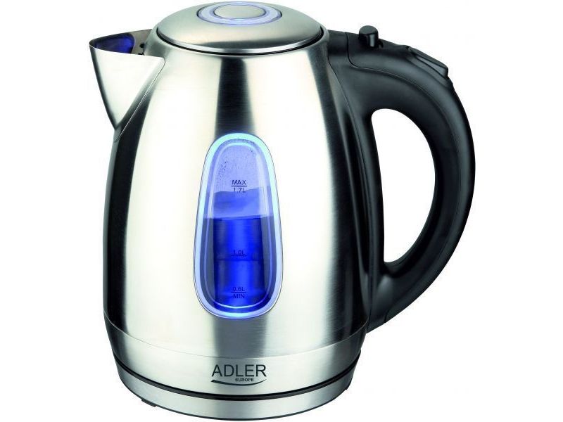 Adler AD1223, 1,7 l, 2000 W, Sort, Rustfritt stål, Rustfritt stål, Vannivåindikator, Trådløs