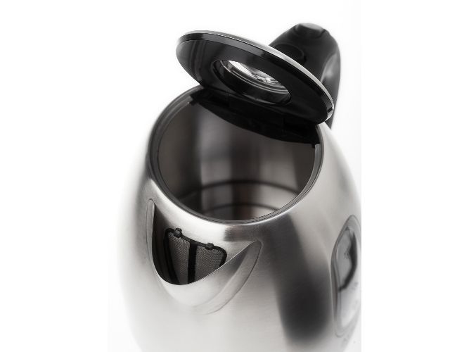 A big electric family kettle allowing to boil water for 6-7 people at one go thanks to its power of 2200 W. The kettle is equipped with a bright water level indicator and automatic switch off, so it will switch off after water boils. Boil-dry protection prevents from switching on an empty kettle, what saves energy and increases the user´s safety. Moreover, a sediment filter will provide appropriate quality of water. For the user´s convenience the kettle was equipped with a 360 degree rotary base and a flat bottom. The kettle is made of stainless steel and is equipped with a LED pilot light. The appliance´s design is elegant and modern. Water level indicator is backlit what makes it more legible. This kettle can boils up to 1.7 l of water. Such amount of water is sufficient for even 10 cups of good coffee.