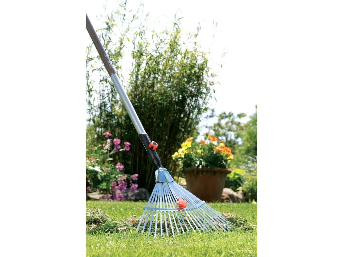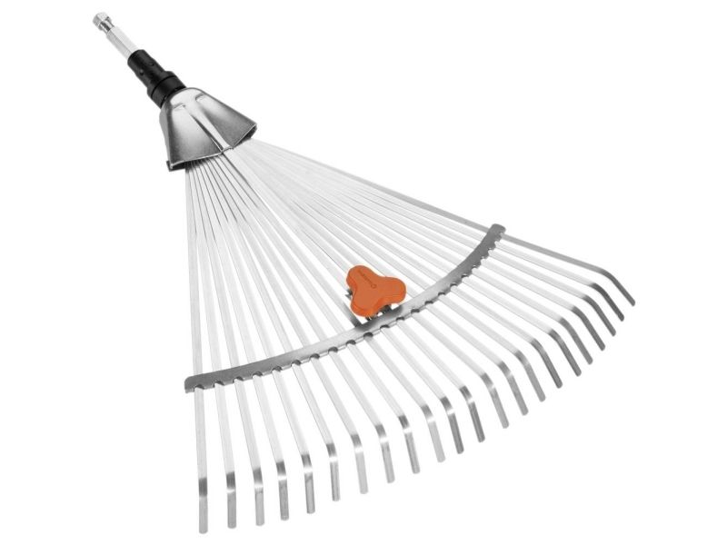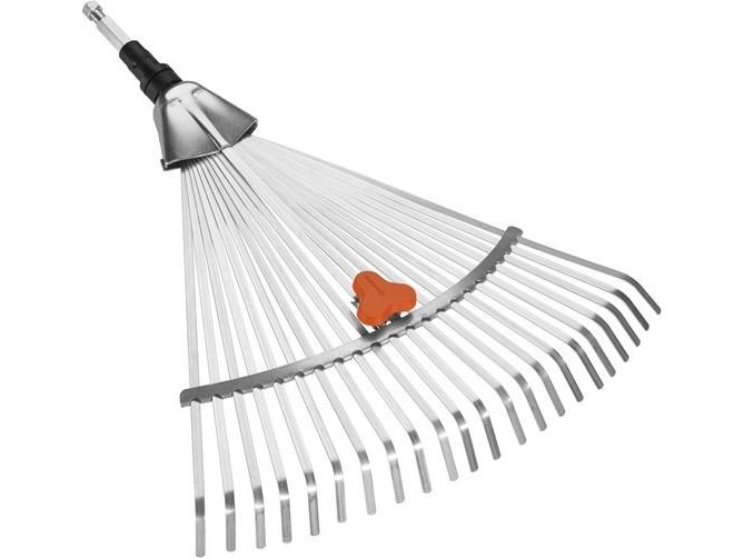 The GARDENA combisystem Adjustable Rake is ideally suited for raking leaves, grass clippings and other garden debris. The width between the flexible and zinc-plated spring-steel prongs can be easily adjusted. With a working width of 30 to 50 cm, coarse or fine material can be raked. The Adjustable Rake is suitable for all GARDENA combisystem handles, whereby GARDENA recommends a handle length of 130 cm, depending on body height.