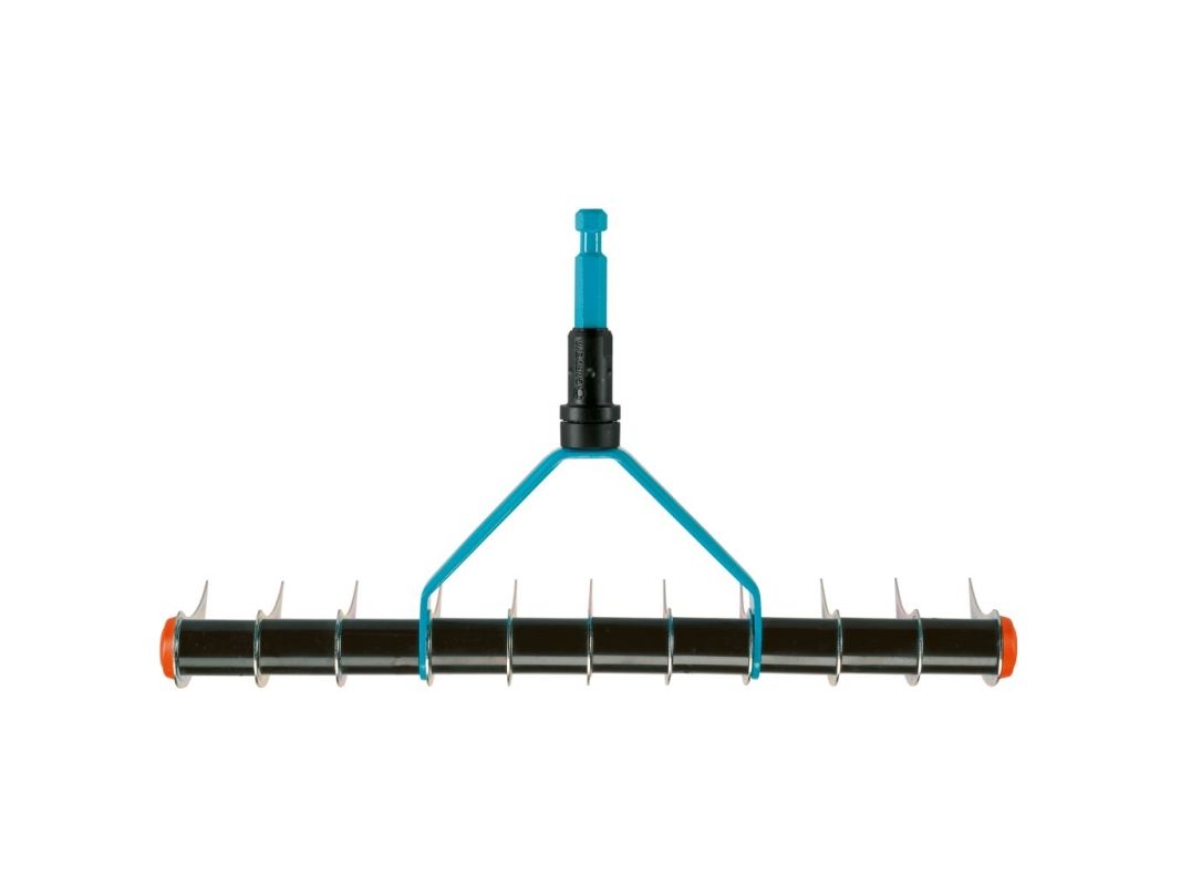 Med dens galvaniserede og formstøbte tænder og en arbejdsbredde på 35 cm er plænelufteren også velegnet til opbrydning af jordklumper og til udjævning.