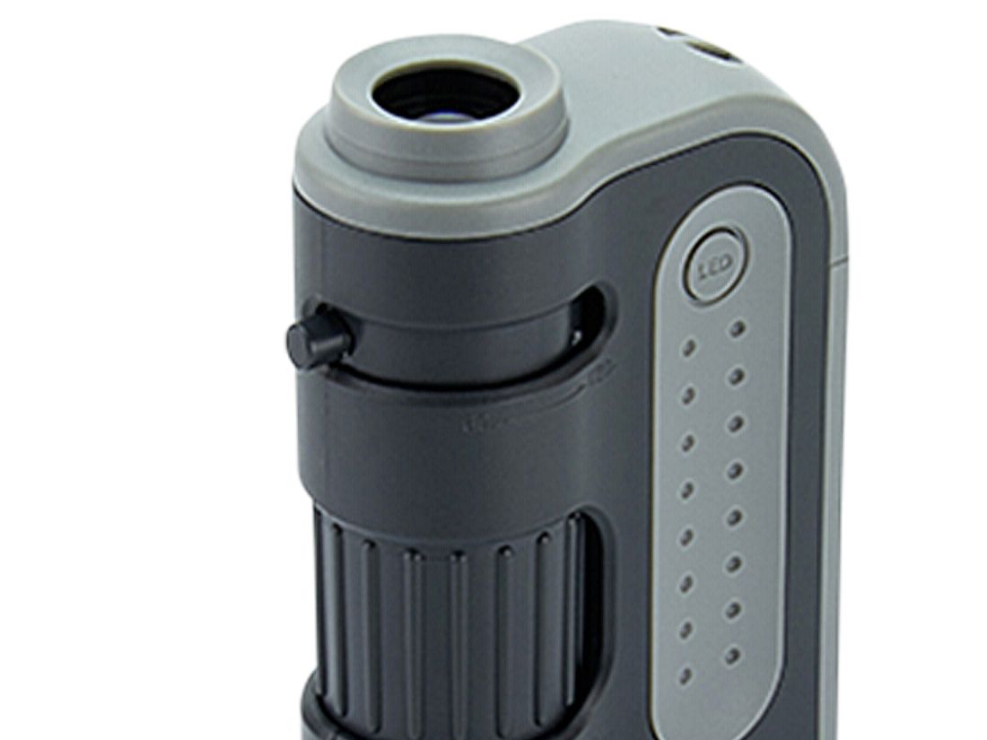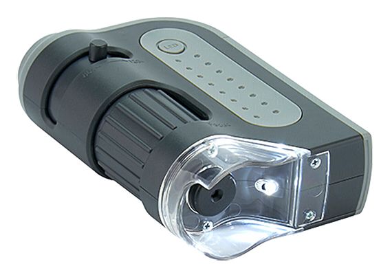 The MM-300 MicroBrite Plus is a powerful 60-120x power pocket microscope with an extremely lightweight and portable design. This pocket microscope features a built-in LED light that provides a bright, clear image. The MicroBrite Plus fits easily in your pocket so you can bring it with you anywhere.