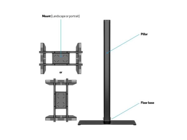 Highlights - Sleek Nordic design in pitch black matte finish - Aluminum heavy duty, light weight pillar construction with solid steel floorbase plate - Present digital content wherever you want it - Easy to assemble and install - 180cm height perfect for seated and standing audiences - Optional: Camera holder, Shelves etc - Available in silver and black colors - Has a built in Anti theft system for an optional pad lock