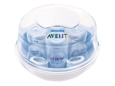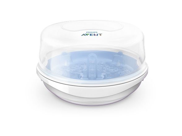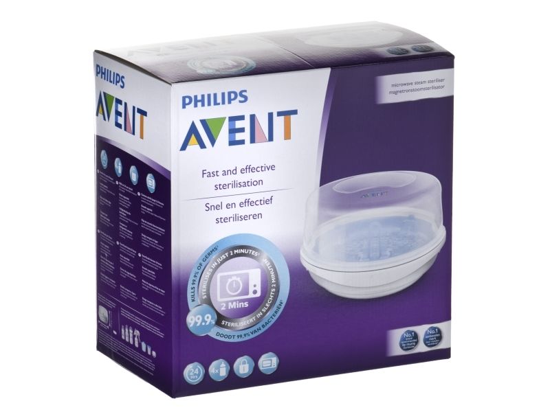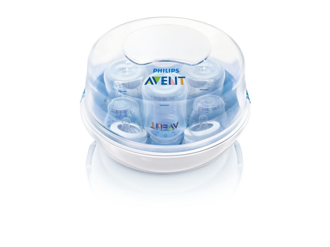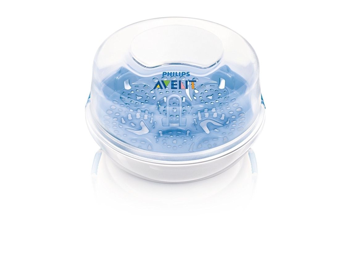 Philips Avent dampsterilisator for mikrobølgeovn har en lett og kompakt utforming, slik at den passer perfekt til bruk i og utenfor hjemmet. Innholdet forblir sterilt i opptil 24 timer hvis lokket ikke åpnes.