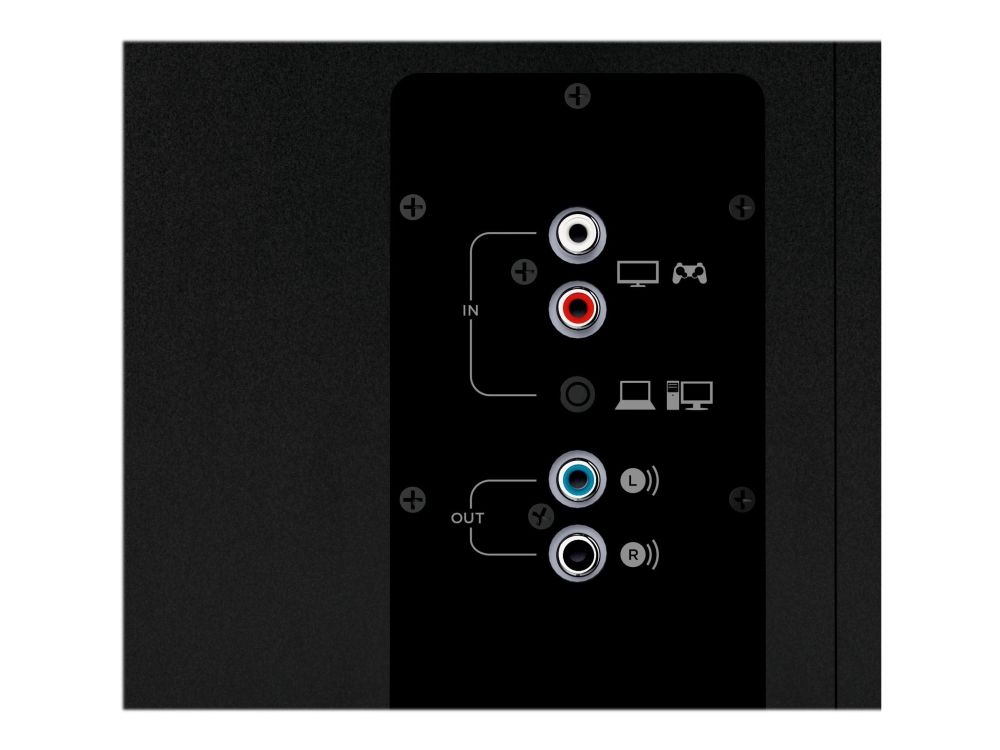 Du kan koble til opptil tre kilder samtidig. Bruk den som en PC-høyttaler som du også kan koble sammen med nettbrett, smarttelefoner, spillkonsoller eller TV-er via 3,5 mm tilkobling eller RCA-innganger. En 3,5 mm inngang finnes på kontrollenheten, for å koble til mobile enheter.En 3,5 mm og RCA-inngang er på baksiden av basshøyttaleren, for PC-er, TV-er eller spillkonsoller - PlayStation 3 eller Xbox 360. RCA-kabel er ikke inkludert med produktet.
