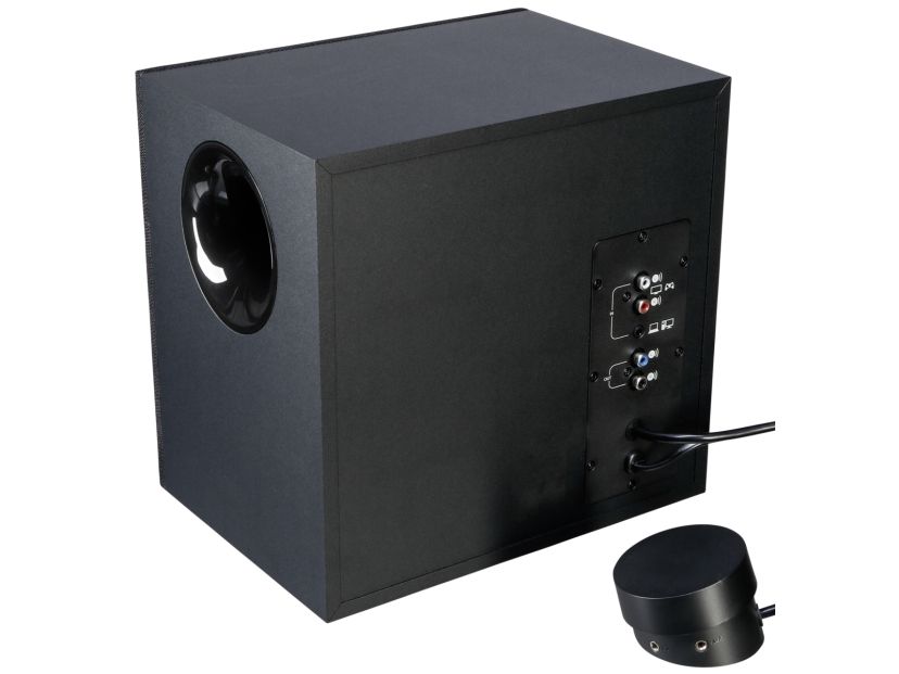 Kontroller ved fingertuppene for optimal PC-høyttaler opplevelse. Plasser den trådede fjernkontrollen innen rekkevidde for å kontrollere effekt, volum og bass. I tillegg til kontroller, har enheten en 3,5 mm inngang, slik at du kan koble til smarttelefon, nettbrett eller MP3-spiller.