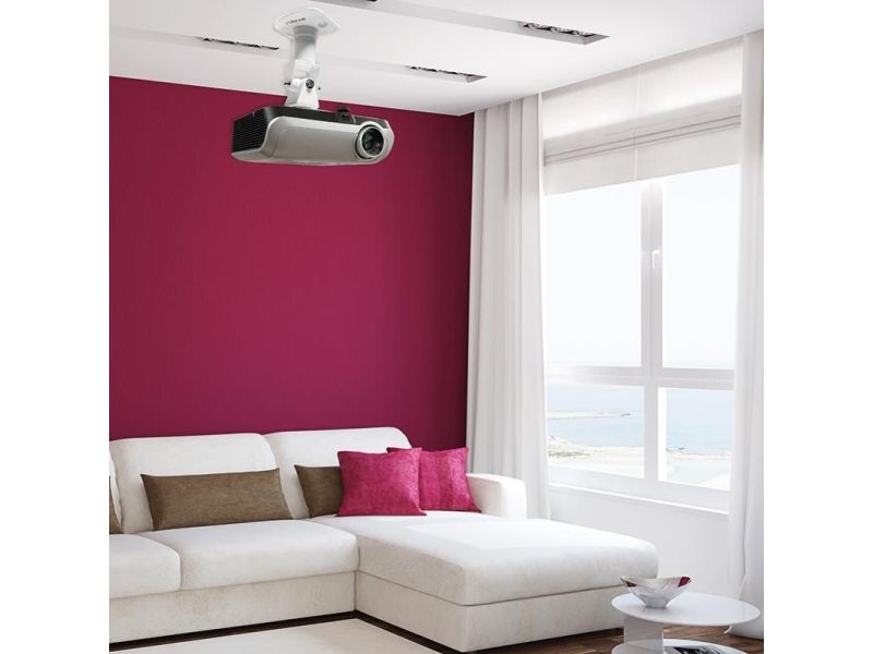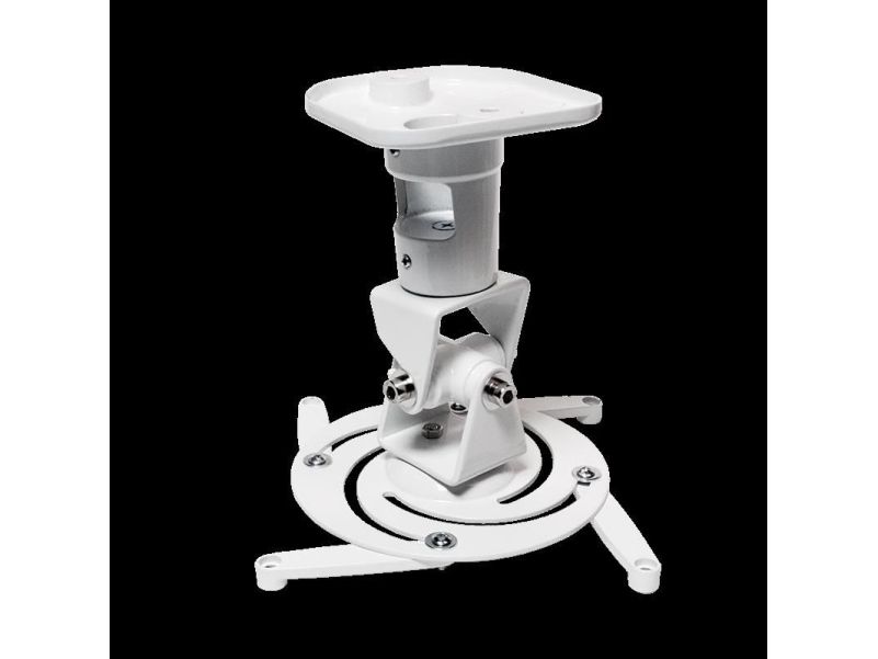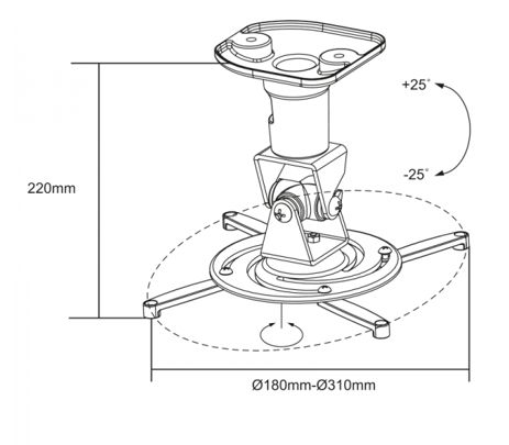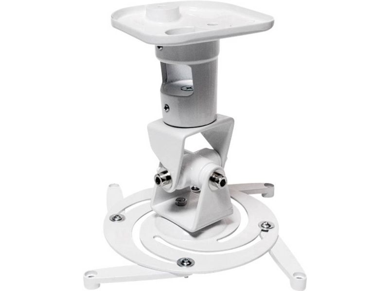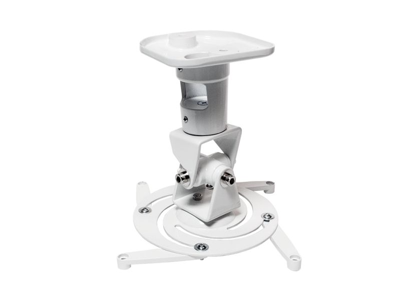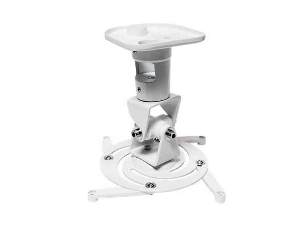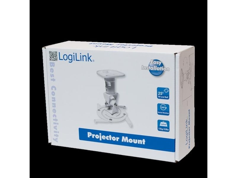 The logiLink projector mount is made of an aluminum alloy die-cast construction and holds projectors of up to 15 kg via a screw connection with a range from 18-31 cm in diameter. The cable-mounting channel ensures order. The mount can be tilt up to 25° and can be swiveled up to 360°. It is suitable for flat ceilings and is supplied with the necessary installation material for an easy installation.
