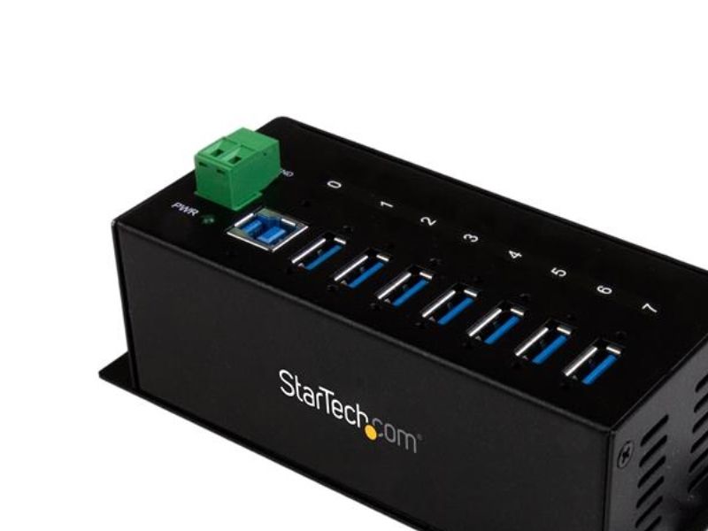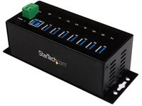 Startech 7-Port USB 3.0 Hub - Metal Industrial USB-A Hub with ESD Protection & 350W Surge Protection - Din Rail, Wall or Desk Mountable - TAA Compliant USB Expander Hub (ST7300USBME) - Hub - 7 x SuperSpeed USB 3.0 - DIN-skinnemonterbar, veggmonterbar - DC-strøm - for P/N: ITB20D3250, USB312SAT3CB, USB315CB2M, USBLT1MWS, USBLT2MBR, USBLTM1MBK, USBLTM1MWH