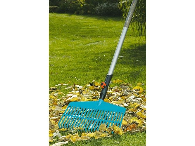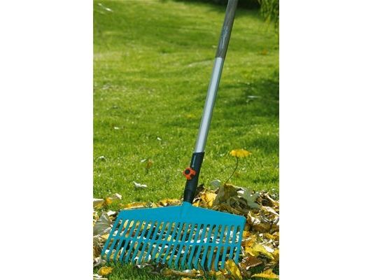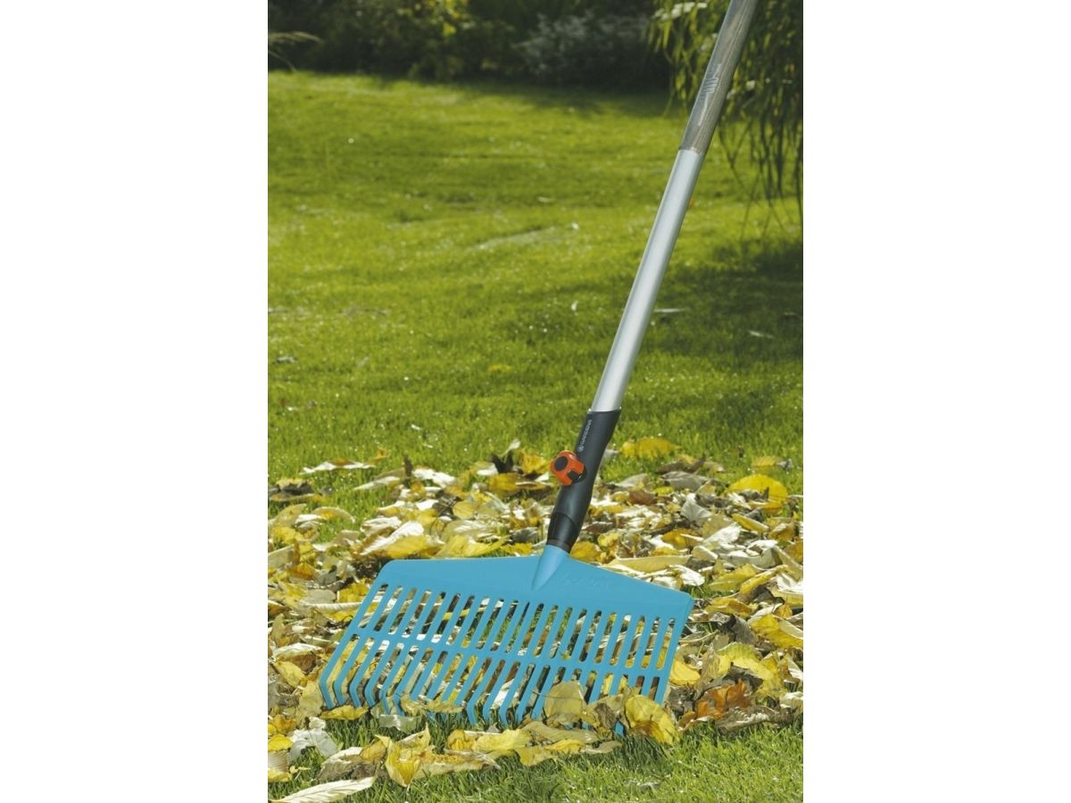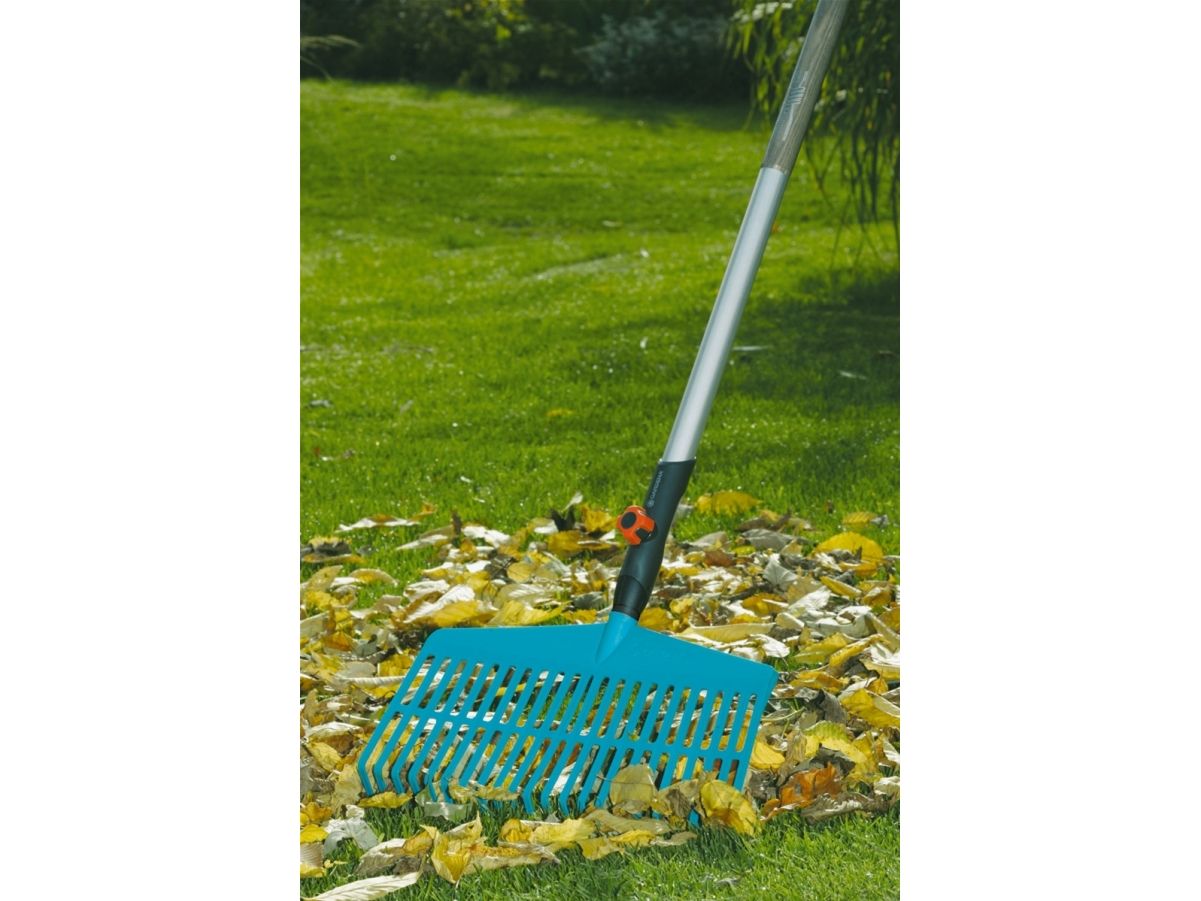 For raking leaves and grass clippingsThe GARDENA combisystem Lawn Rake is ideally suited for raking leaves grass clippings aerated material and other garden debris. Sturdy tines made of high-quality plastic arranged in a working width of 43 cm allow easy practical and lawn-sparing work. The Lawn Rake is suitable for all GARDENA combisystem handles whereby GARDENA recommends a handle length of 130 cm depending on body height. The warranty period is 25 years.