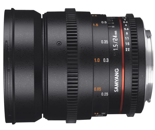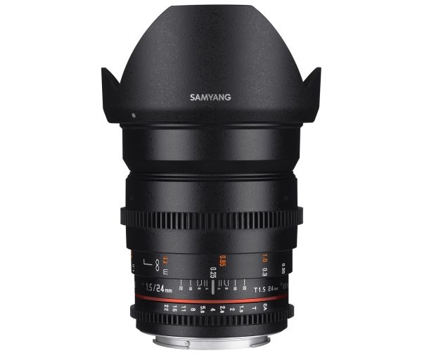 Samyang Optics 24mm T1.5 VDSLR ED AS IF UMC II is a wide angle manual focus cine lens designed for full frame sensor sizes.