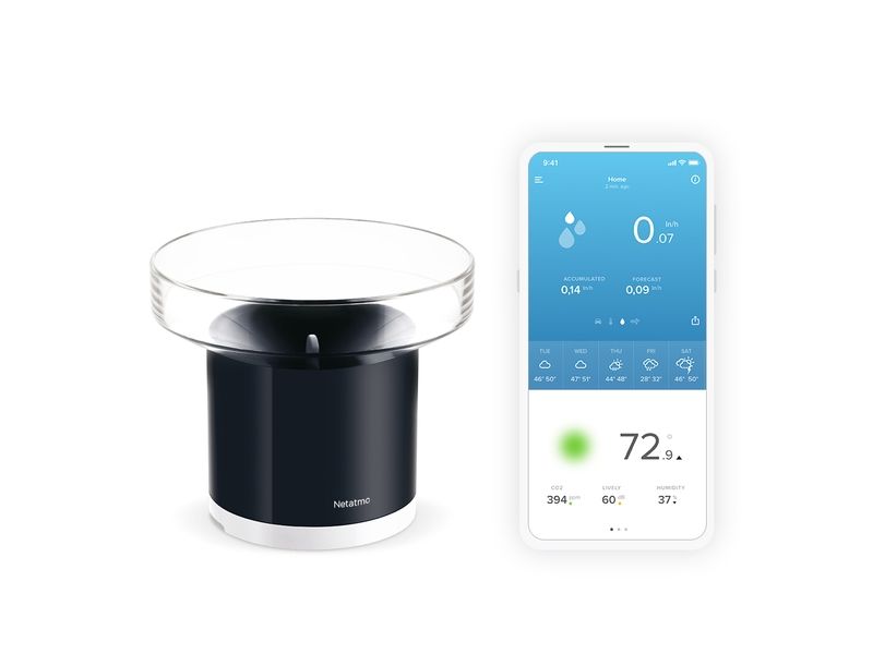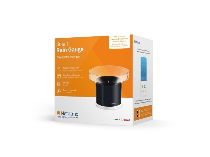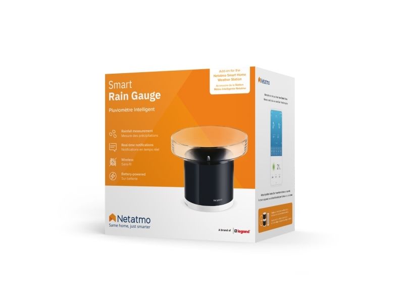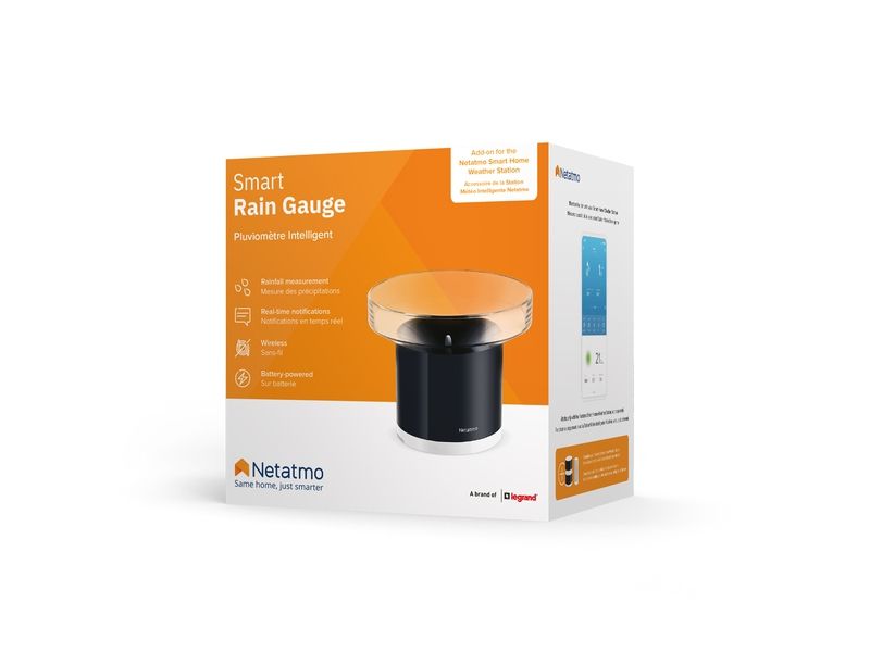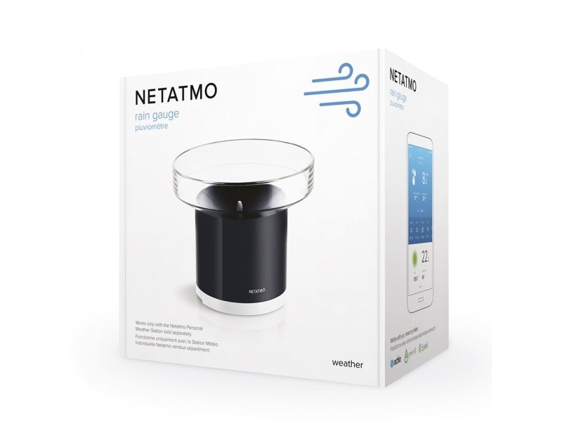 The perfect addition to your Weather Station, the Netatmo Smart Rain Gauge sends rainfall data directly to your smartphone. Check rainfall at home in millimetres per hour remotely and in real time. The highly accurate Rain Gauge measures rain intensity as well as rainfall over the last hour and since midnight.