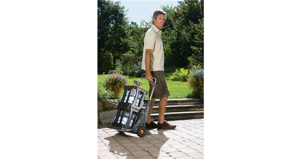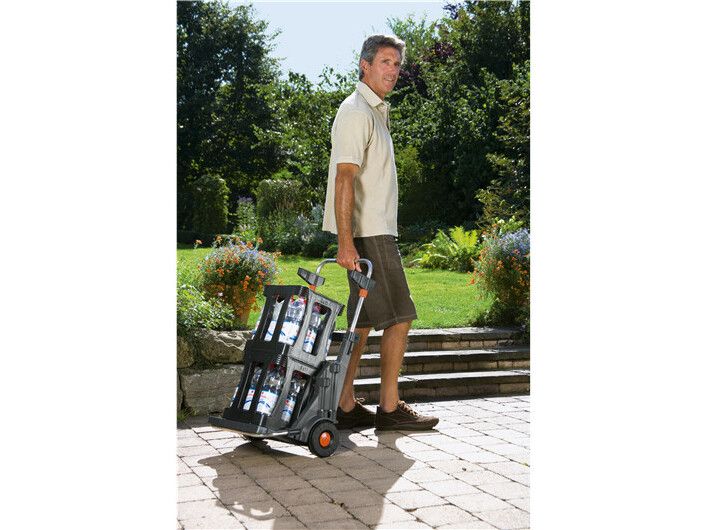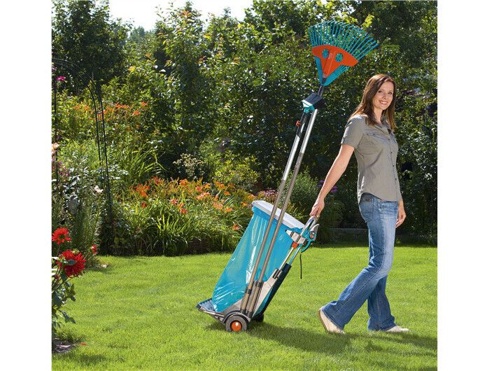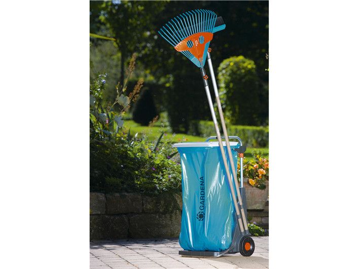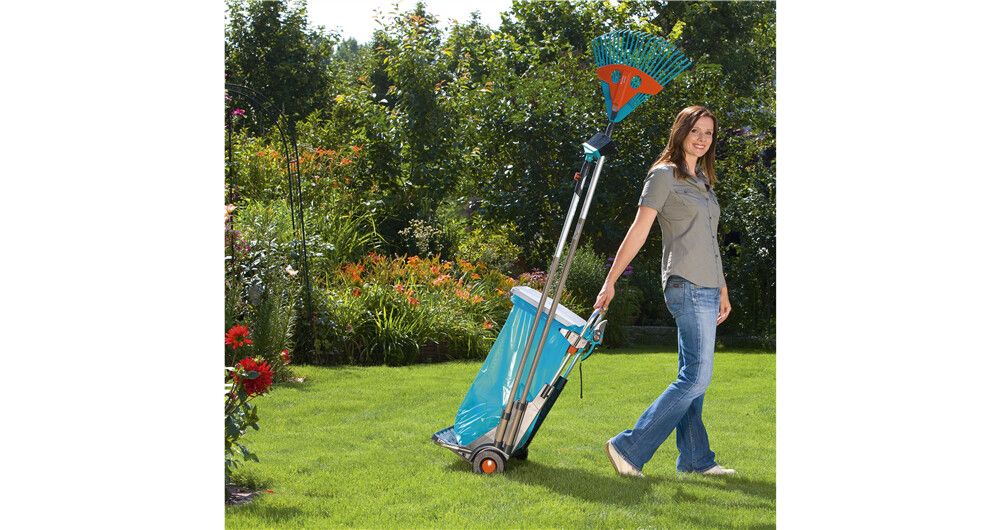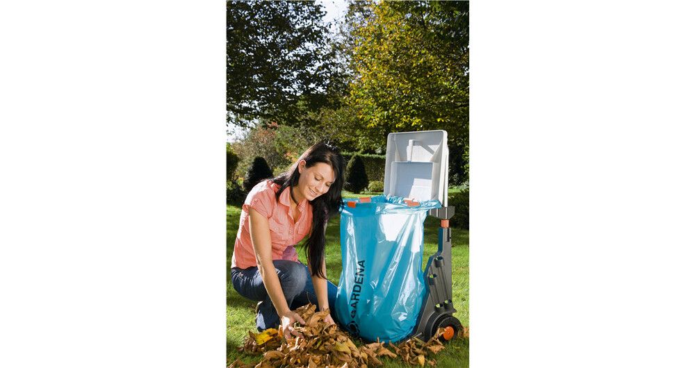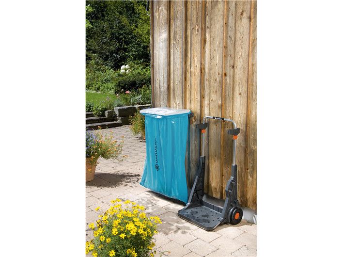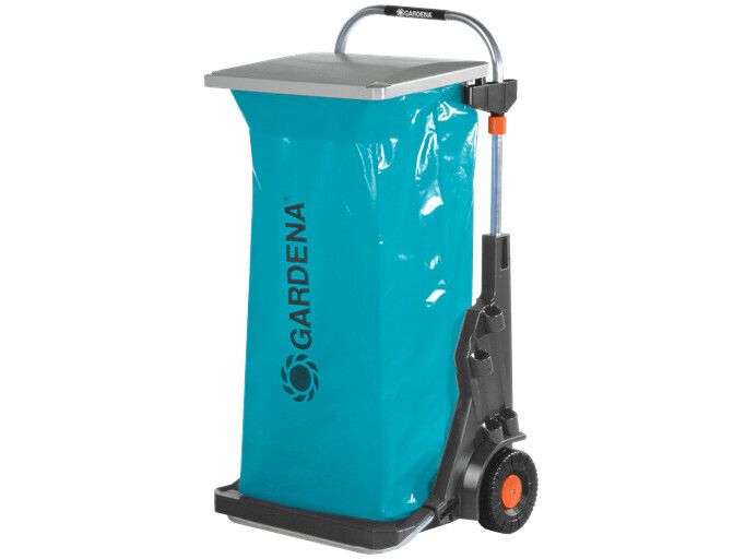 Den bærbare hagevognen fra GARDENA har mange bruksområder, for eksempel til praktisk oppsamling og fjerning av hageavfall, ugress, filt og søppel. Den er utstyrt med store, robuste hjul med spesialmønster som gir godt grep og ikke skader plenen, og den solide metallrammen tåler en vektbelastning på opptil 70 kg. Det praktiske lokket har to funksjoner: Det beskytter mot lukt og fuktighet og kan også brukes som feieblad. Materialet i rustfritt stål garanterer lang holdbarhet. Den høydejusterbare poseholderen gjør det enkelt å fylle avfallsposen, som kan festes med klips. Den bærbare hagevognen kan også brukes til å kildesortere avfall, fordi to poser kan festes ved siden av hverandre. Den har oppbevaringsplass for to combisystem-håndtak og to mindre redskaper, f.eks. combisystem-redskaper, håndkost osv. Hvis du fjerner poseholderen, kan den bærbare hagevognen også fungere som en håndtralle for praktisk transport av frukt- og drikkekasser. I mellomtiden kan du henge stativet og avfallsposen på veggen. GARDENA Portable Garden Trolley er fullt utstyrt med et veggmontert stativ og en avfallspose.