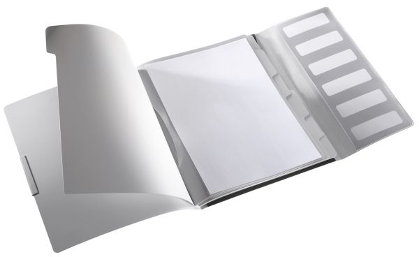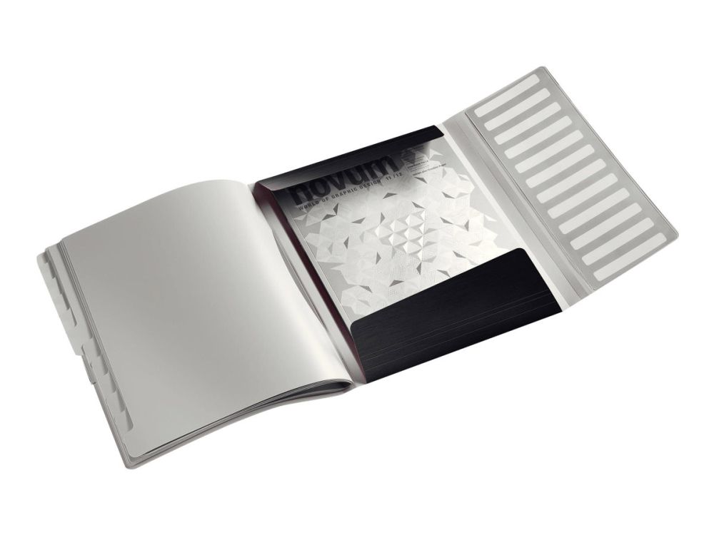 Distinctive, high quality PP divider book with a soft brushed finish and in a sophisticated colour range: arctic white, garnet red, celadon green, titan blue and satin black. Ideal for sorting and organising documents.