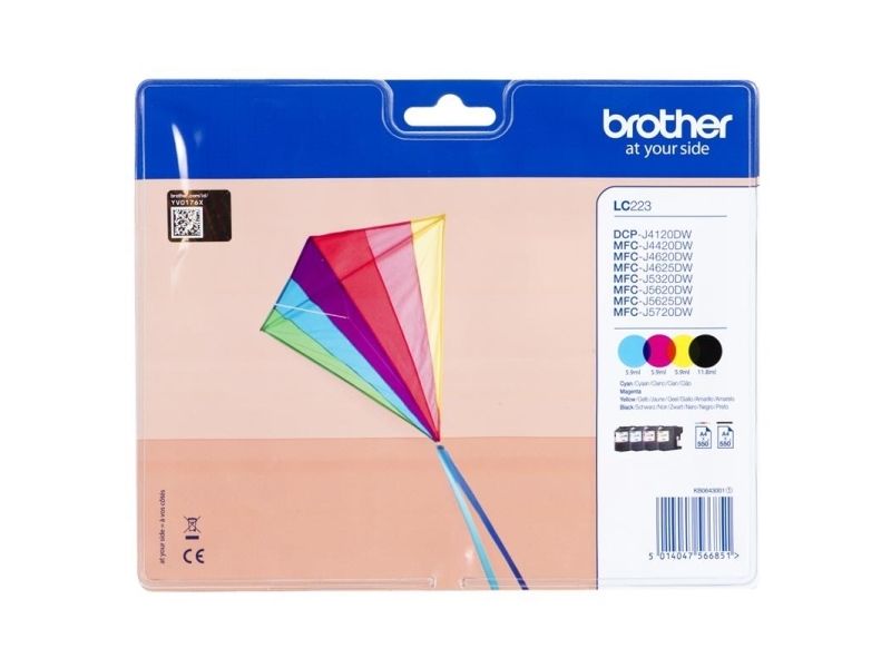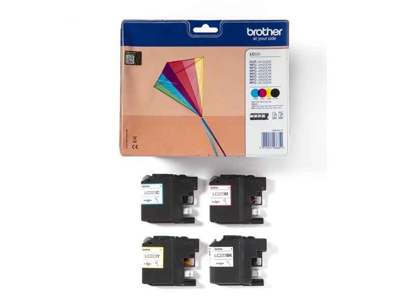 Ensure that replacing your genuine Brother ink cartridges is as hassle-free and affordable as possible by purchasing this LC223VALBP multi pack. The pack contains black, cyan, yellow and magenta LC223 cartridges, all designed to help you get the best from your Brother printer.