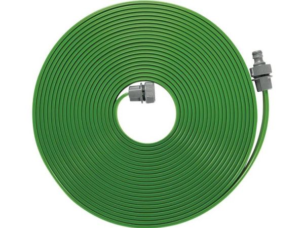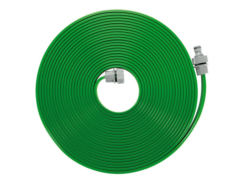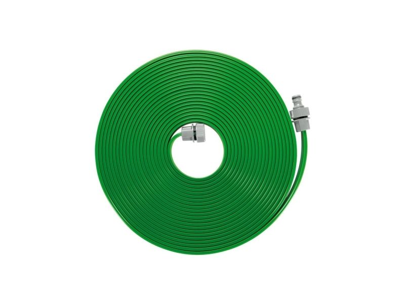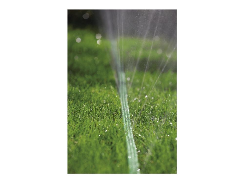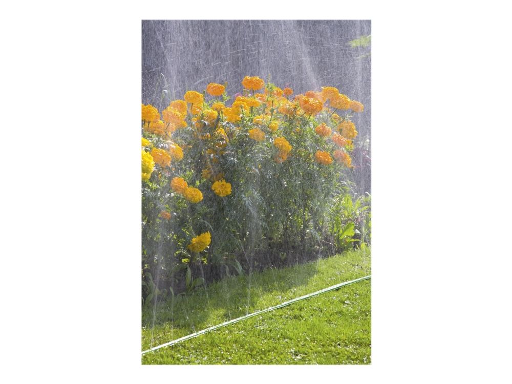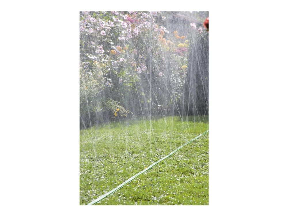 The GARDENA Sprinkler Hose gives optimal fine spray for beds, borders and narrow areas. It includes all required GARDENA System Fittings so all you need to do is connect it to a water source. The green-coloured Sprinkler Hose has a fixed length of 15 m, but can be extended through simple connecting up to maximum 22.5 m. It can also be individually shortened – simply cut it to the desired length and assemble the connection fittings. You can also obtain the Sprinkler Hose in your desired length because it is available by the metre. The Sprinkler Hose has a 10-year hose warranty. For easy irrigation of smaller areas.