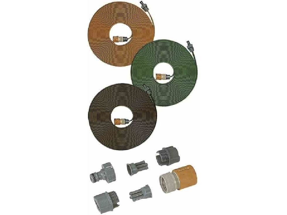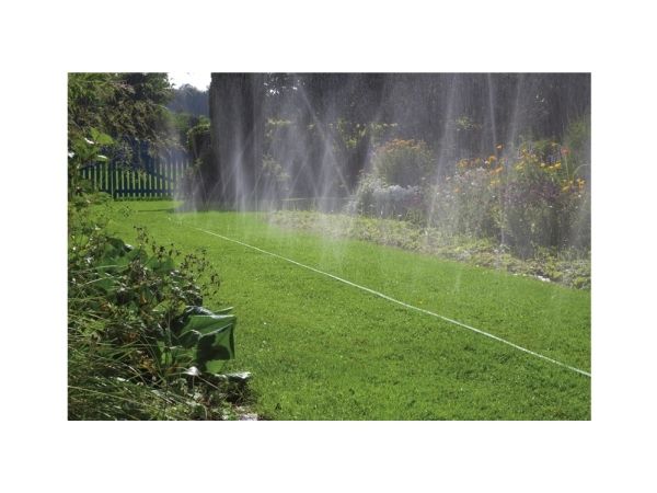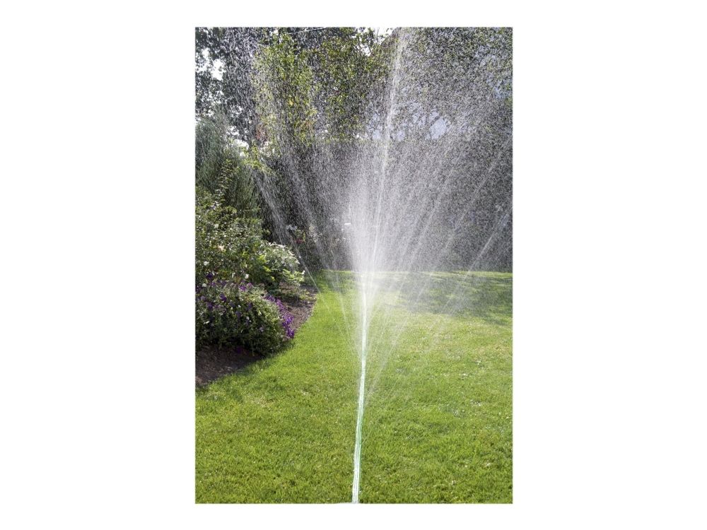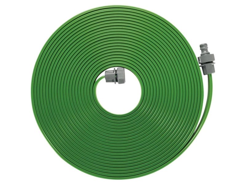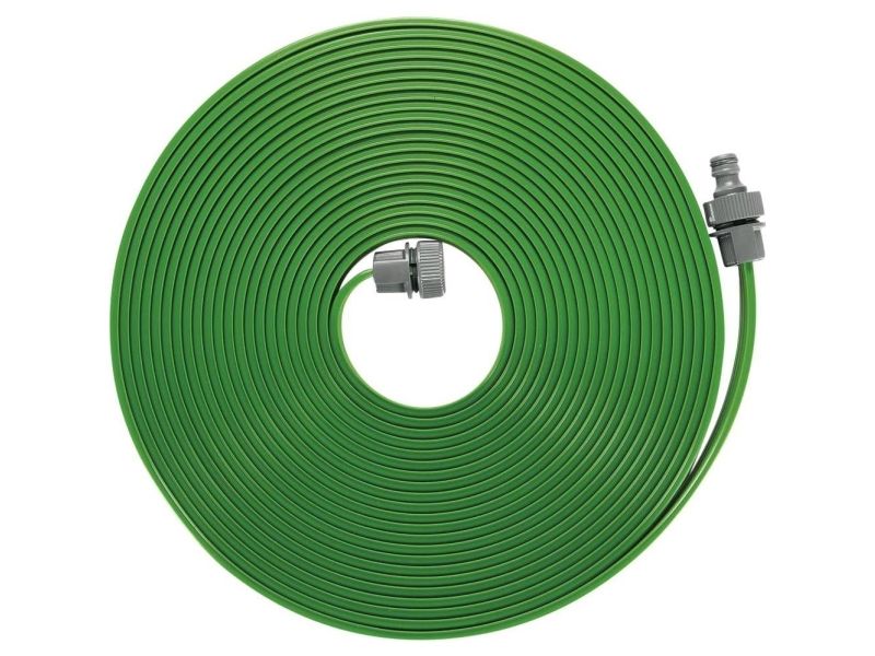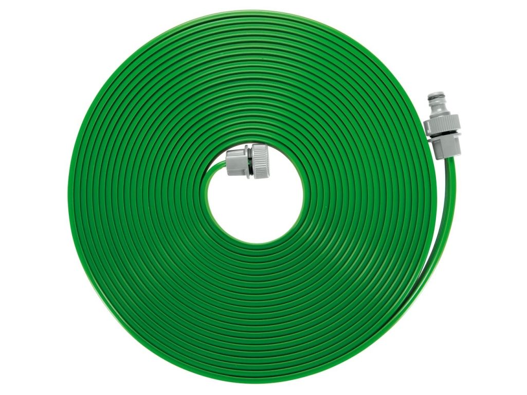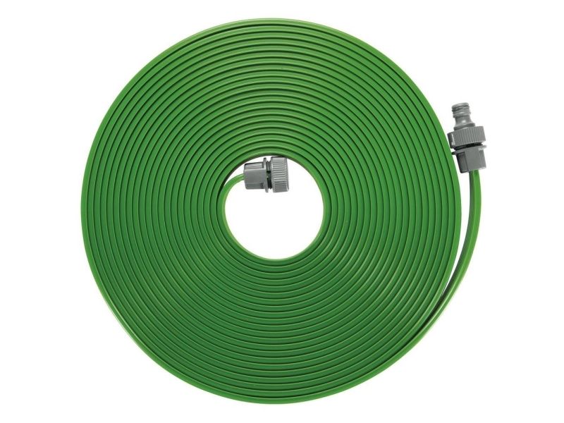 The GARDENA Sprinkler Hose gives optimal fine spray for beds, borders and narrow areas. It includes all required GARDENA System Fittings so all you need to do is connect it to a water source. The green-coloured Sprinkler Hose has a fixed length of 15 m, but can be extended through simple connecting up to maximum 22.5 m. It can also be individually shortened – simply cut it to the desired length and assemble the connection fittings. You can also obtain the Sprinkler Hose in your desired length because it is available by the metre. The Sprinkler Hose has a 10-year hose warranty. For easy irrigation of smaller areas.