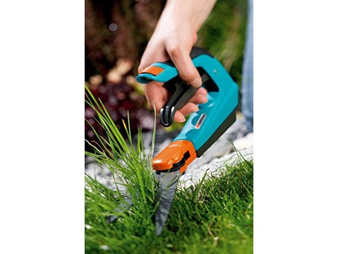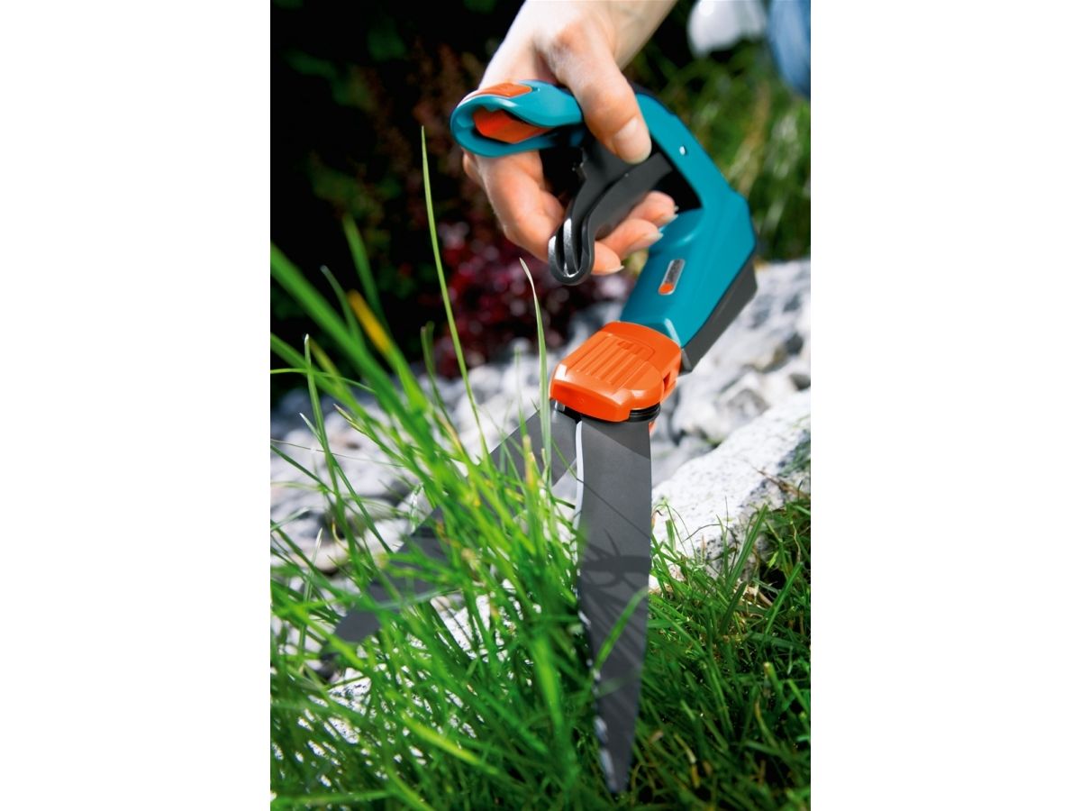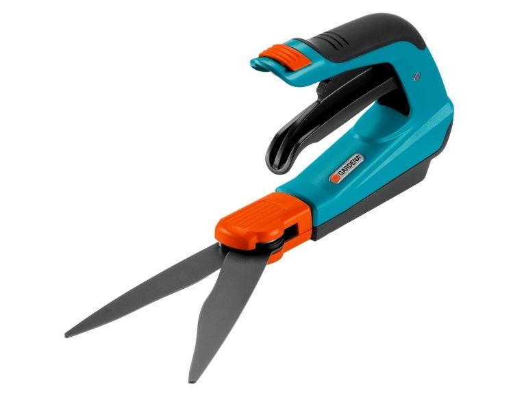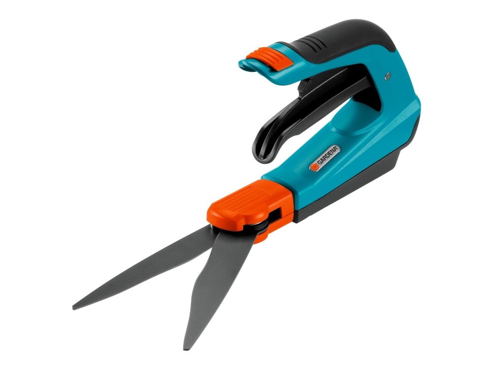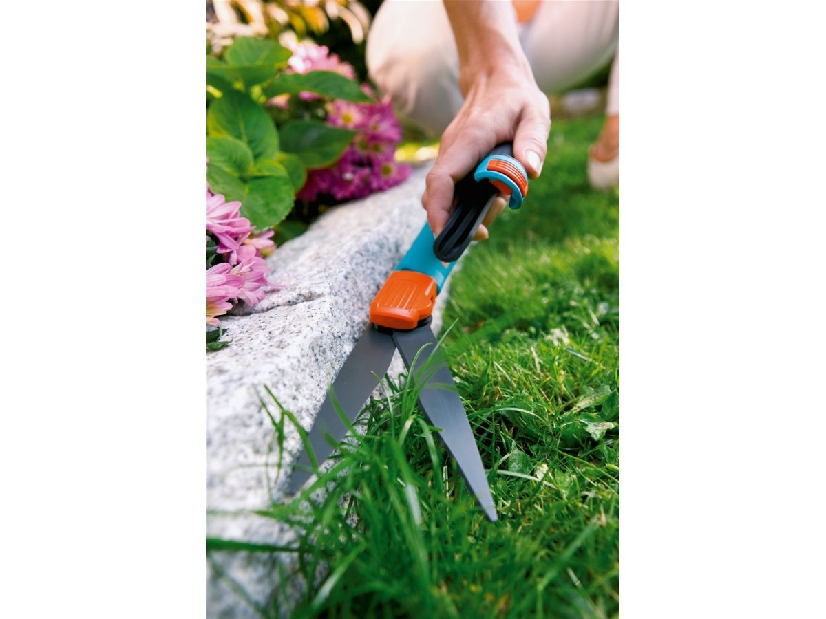 Fleksibel græssaks - komfortabel og ergonomisk GARDENA Comfort-græssaksen muliggør let og nøjagtig plænekantning. Selv sværttilgængelige områder i haven kan let nås. Håndtagets specielle form med patenteret optimal kraftanvendelse muliggør ekstra let klipning af plænens kanter og optimal ergonomi i enhver situation. Fordi skæring er mulig i 360° kan både venstre- og højrehåndede arbejde behageligt med saksen. De bløde plastikkomponenter sikrer behagelig håndtering. De klæbebeskyttede, bølgeslebne skæreknive sikrer nøjagtig klipning med samme højde. Takket være de specielle knivlejer, garanteres jævn og effektiv klipning i hele knivens længde. Glidesålen sikrer let styring og ensartet klippehøjde. Den praktiske lås til enhåndsbetjening betyder, at græssaksen let og hurtigt kan låses.