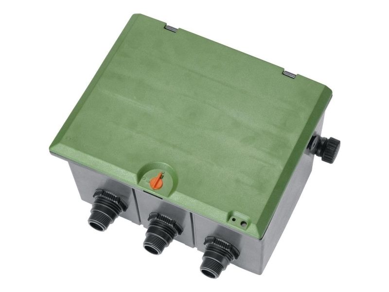 Med GARDENA Valve Box V3 kan du koble tre vanningsventiler 24 V eller 9 V Bluetooth til vanningssystemet ditt og gjøre hagearbeidet enda enklere. Den teleskopiske skrueforbindelsen gjør det enkelt å montere og demontere boksen. Når du har koblet til ventilene, er boksen umiddelbart klar til bruk. Ventilboksen kan kobles til flere V1- eller V3-bokser hvis det er behov for flere ventiler. Det er enkelt å styre vanningsventilen. Det er mulig å stille inn en 24 V-ventil med flerkanalsstyring 4030, 6030 eller smart Irrigation Control i smart-systemet via en app. Hvis en 9V Bluetooth® vanningsventil 9V brukes, kan vanningen styres direkte med GARDENA Bluetooth-appen. Boksen med de tilkoblede ventilene gir deg en tydelig kabelforbindelse og kan installeres under bakken i hagen. På denne måten er vanningsventilene beskyttet og kan betjenes under alle værforhold uten at det går på bekostning av enkel tilgang. I tillegg kan dekselet på jordingsboksen lukkes på en barnesikker måte. Med Valve Box V3, som er produsert i Tyskland, står ingenting i veien for pålitelig og automatisk vanning av hagen din. Vannstyring: Hele porteføljen av innovative funksjoner for automatisk og vannbesparende hagevanning.