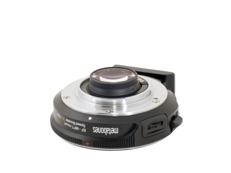 A Micro-4/3 mount Speed Booster adapter designed exclusively for the Panasonic GH4 and other selected Micro Four Thirds cameras, with a magnification of 0.64x. The Speed Booster XL 0.64x uses an advanced 6-element optical design to achieve extraordinary optical performance at apertures up to an incredible f/0.80, a record for Micro Four Thirds format.