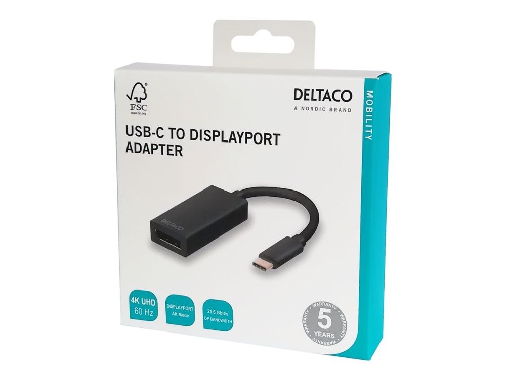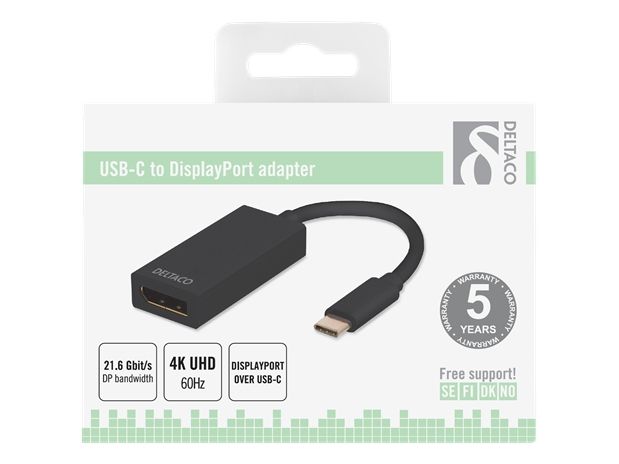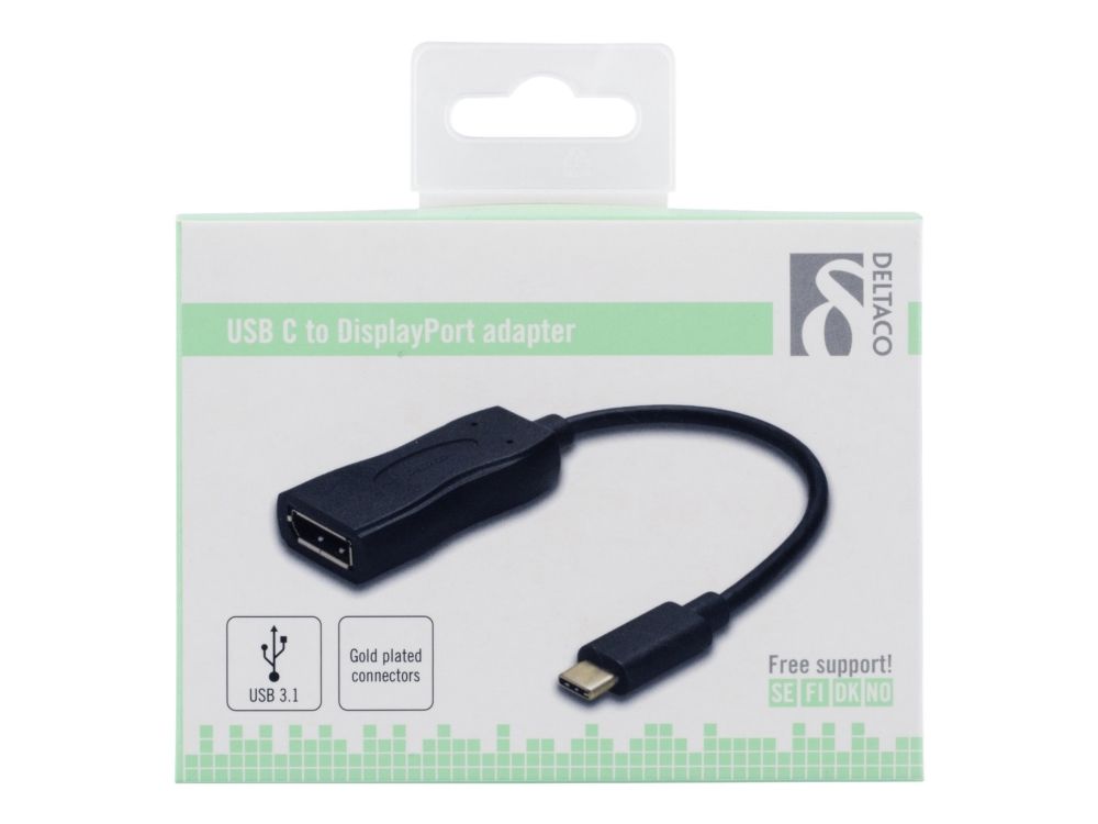DELTACO USBC-DP - Ekstern videoadapter - USB-C 3.1 - DisplayPort - svart