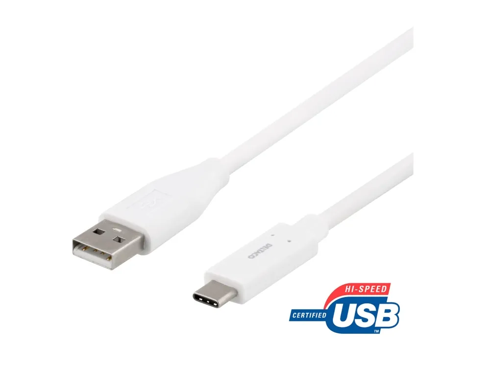 DELTACO - USB-kabel - USB (hann) til 24 pin USB-C (hann) - USB 2.0 - 25 cm - hvit