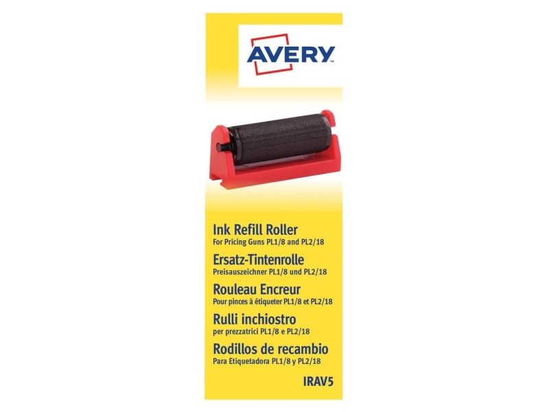 Pakke med 5 sorte blækpatroner til Averys prispistoler med varenr. PL1/8 og PL2 /18. Med Avery prispistoler og tilhørende prisetiketter kan du nemt prismærke, datostemple og batchkode en bred vifte af produkter hurtigt og effektivt. På den måde har du på få minutter salgsklare produkter på butikshylderne.