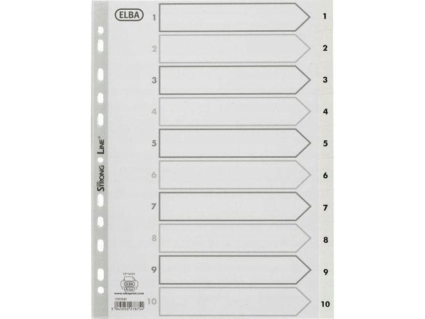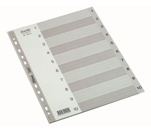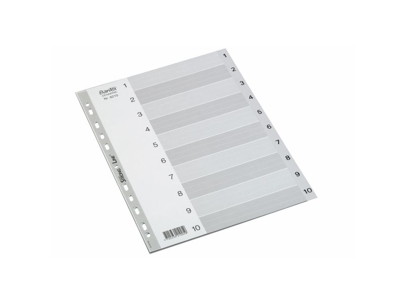 Bantex 100204665, Numerisk faneindeks, Polypropylen (PP), Grå, A4, 226 mm, 297 mm